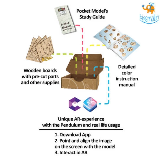 The Ugears Pendulum Kit comes with top quality wooden boards with pre-cut and pre-marked details which will come right out with a light push. The Ugears new feature of QR-code Pocket Model’s Study Guide brings to you the creation story along with the mechanism design and engaging and exciting tasks. With the dedicated Ugears app you can make use of Augmented Reality (AR) and take a close look at how the pendulum works in mechanical clocks. This is STEM learning right at your house or class wherever you may wish to take it.