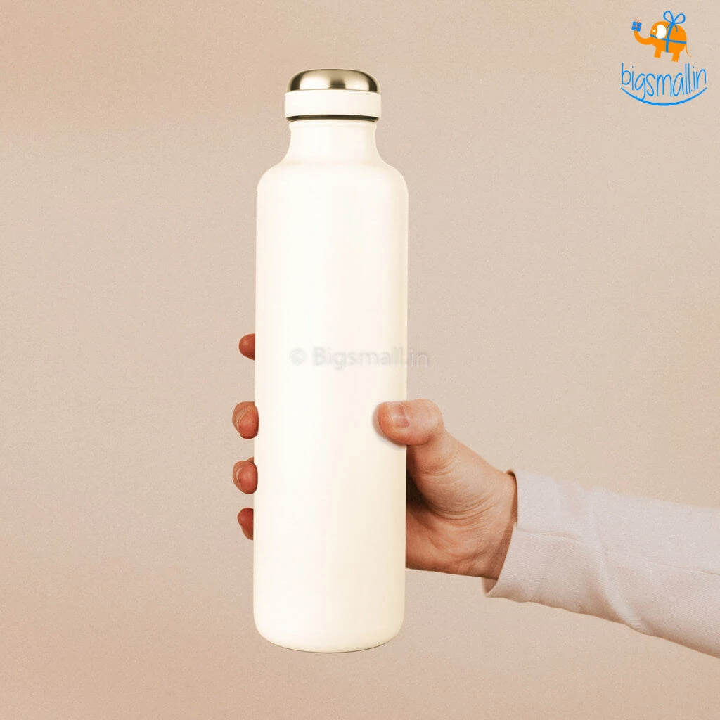 A flask which keeps your drink hot or cold for up to 18 to 24 hours, is easy to carry and is sleek? Yes. The Stainless Steel Flask Bottle of 750 ml is definitely the OG flask for your daily use. Be it carrying a flask filled with tea or coffee, or ice tea, your drink maintains the temperature for a long time and is still fresh without any smell. The bottle is made of stainless steel, inside and out. The lid is covered with silicone for better grip and ease in use, and has ample capacity at 750 ml. The perfect simple & stylish sleek bottle for your daily use!