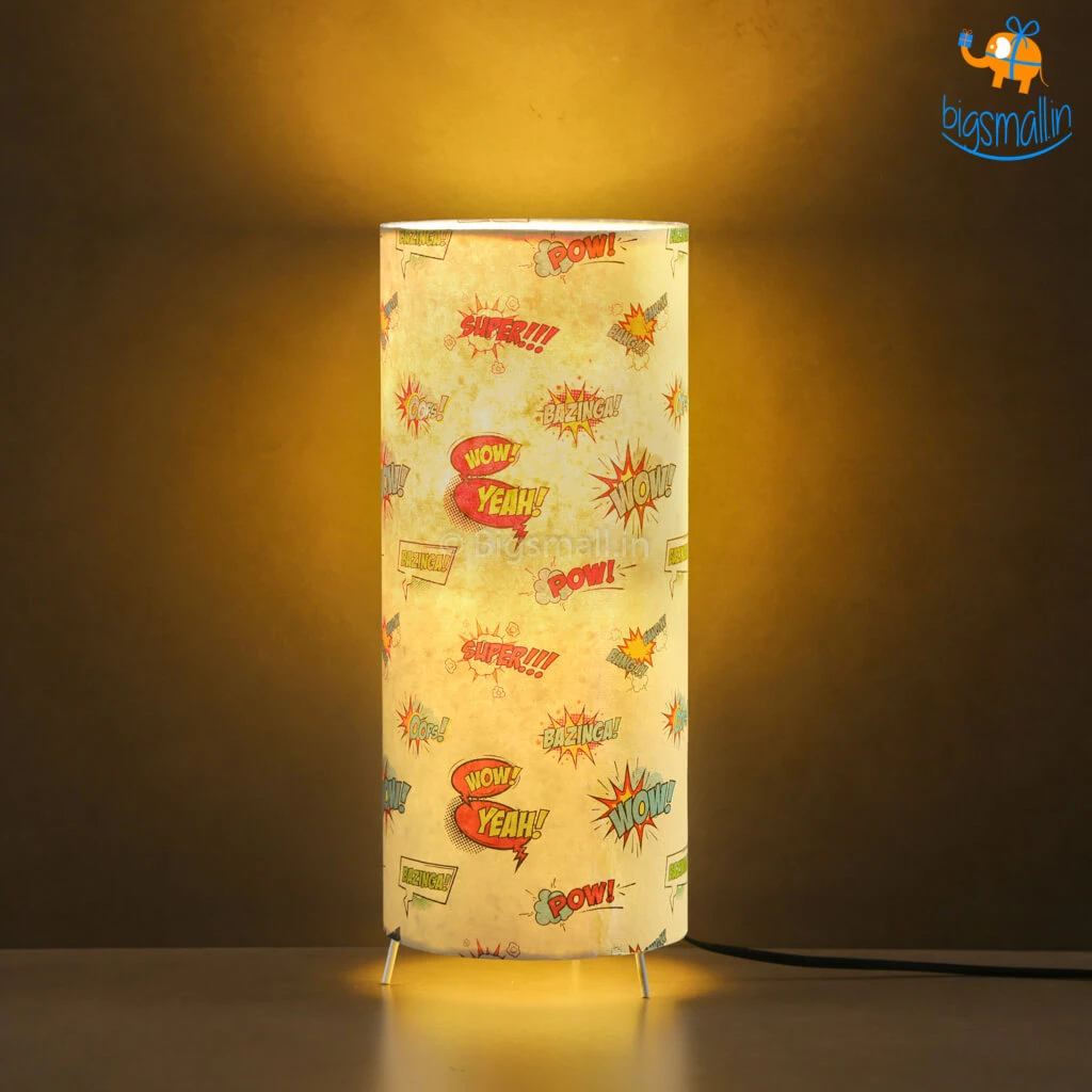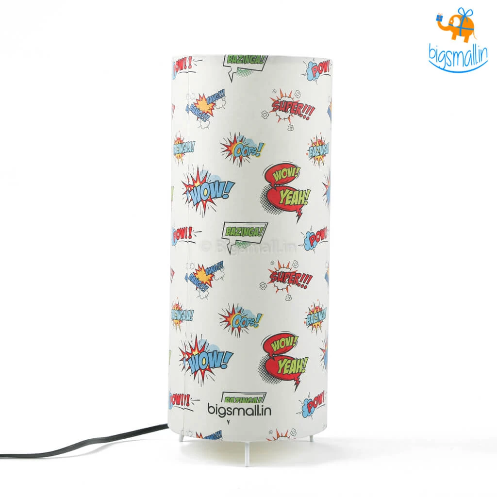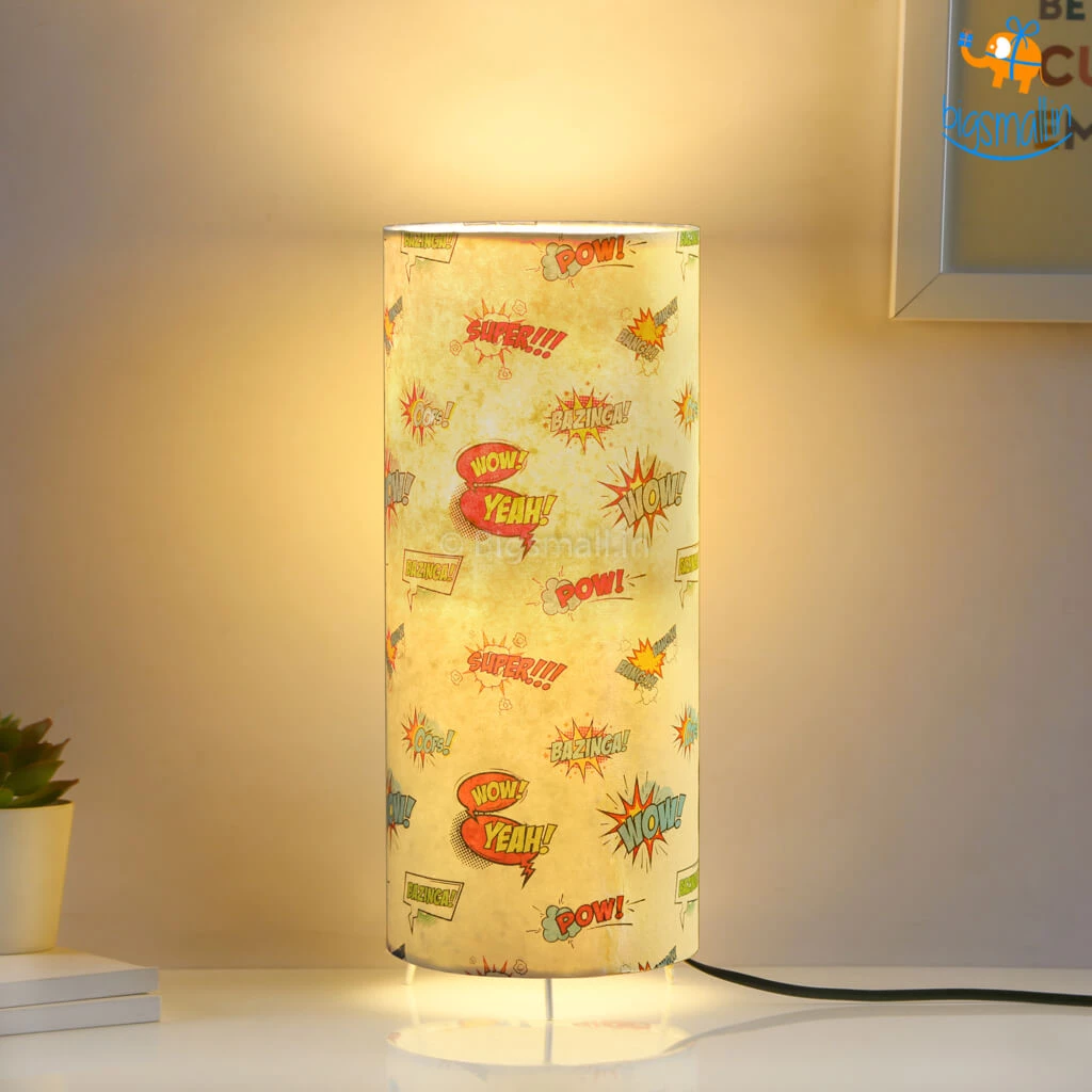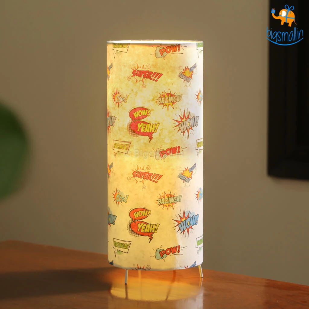 Illuminate your home with this fun paper table lamp. The unique pattern and colour will add a sophisticated yet cheerful vibe to your home decor. The lamp has a metal frame covered by paper on the outside giving it a unique look. With fun comic expression doodles printed on the shade, it makes for a great present for a loved one who loves all things comic books & manga. It can also be used as a part and parcel of a gift set.