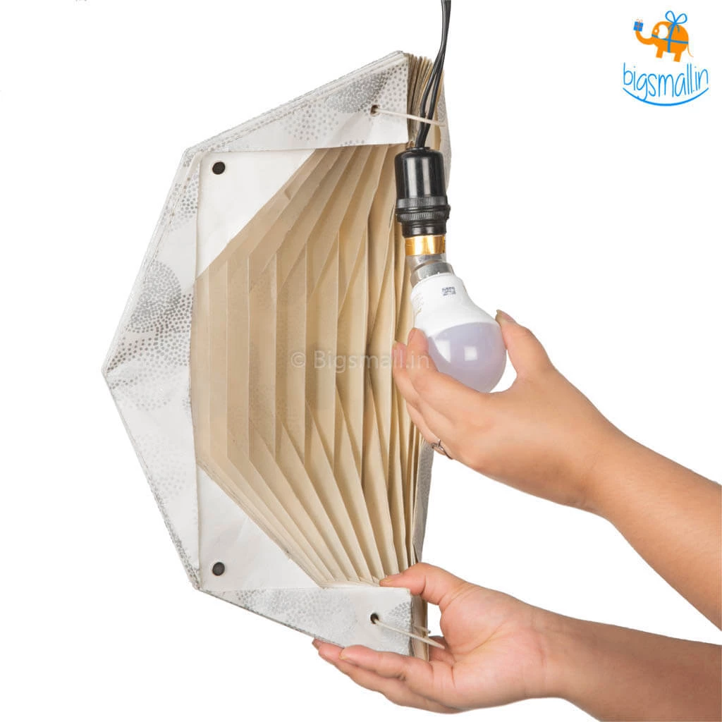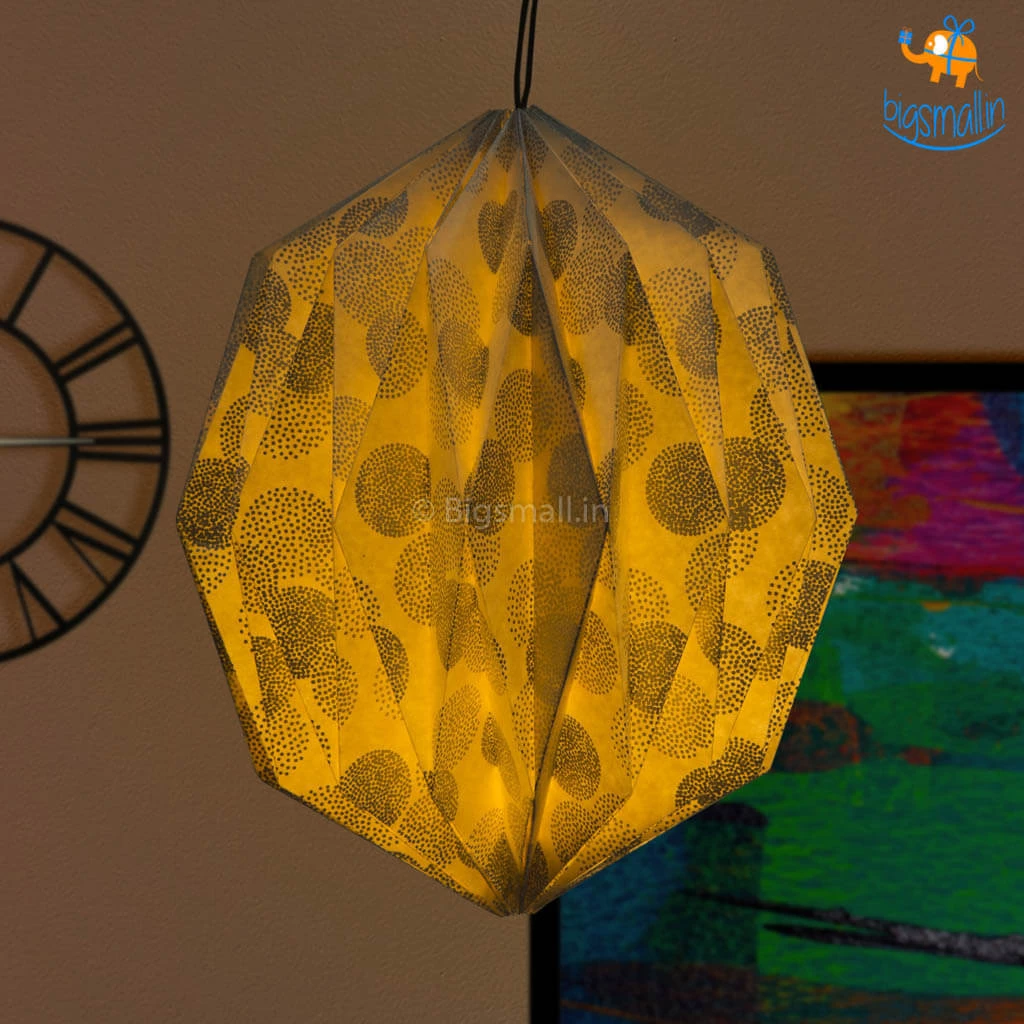 Illuminate your home this festive season with this beautiful handmade paper lantern. The unique pattern and colour will add a sophisticated yet festive feel to your home decor. The lamp has a magnetic closure and can be used with any type of bulb. It can also be used as a part and parcel of a Diwali gift set.