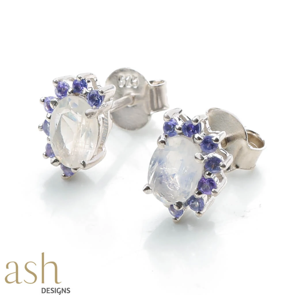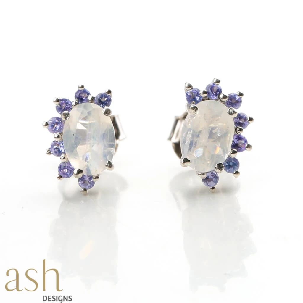 A stunning Rainbow moonstone completed with Tanzanite stones for the shining light you are. Inspired by tiny miracles of life, like the appearance of a rainbow during a storm, the Rainbow Moonstone & Tanzanite Earrings glimmer like little beads of beauty. These are brilliantly cut Tanzanite stones set in 92.5% sterling silver. For all the beautiful women out there, Tanzanite is commonly believed to facilitate a higher consciousness and stimulate intuition and perception.