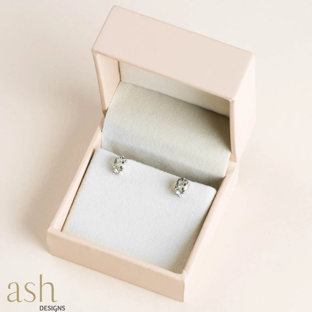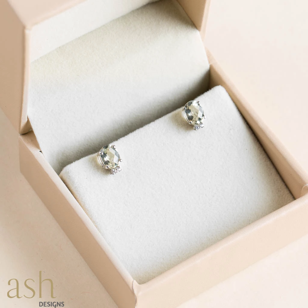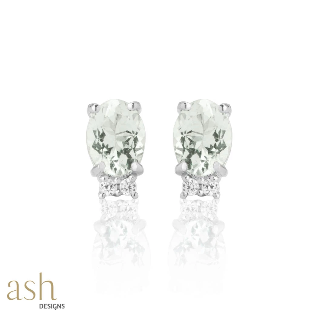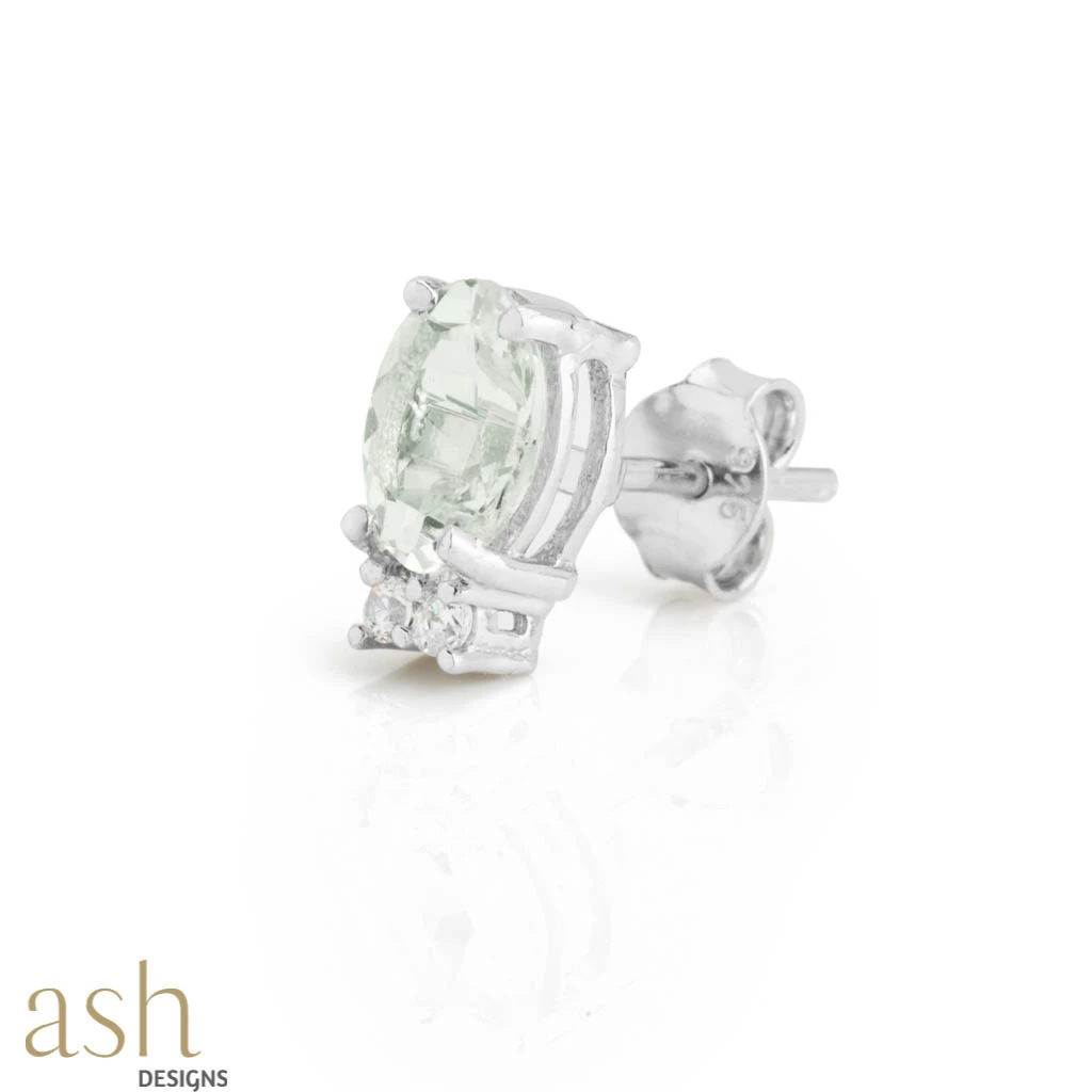 Green Amethyst and Cubic Zirconia - Ear studs