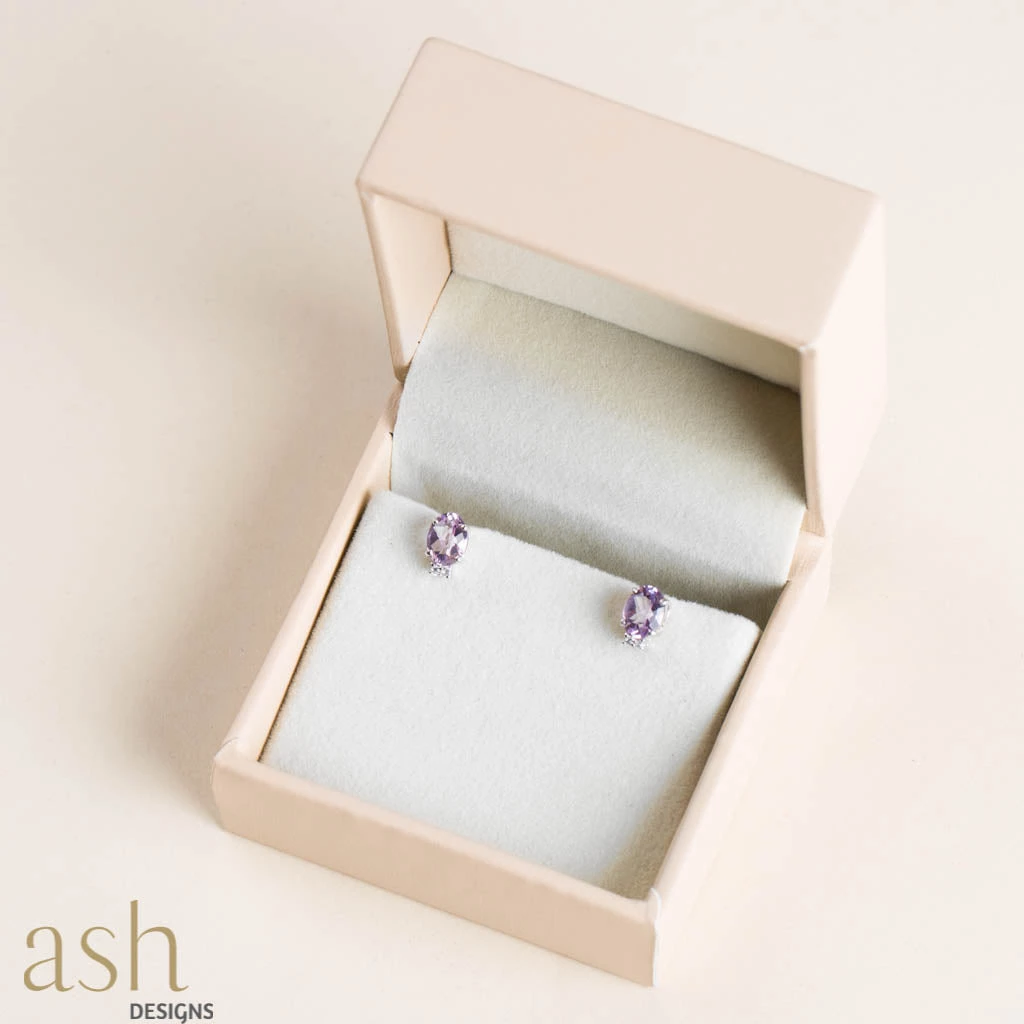 - Gemstones: Amethyst and Cubic Zirconia