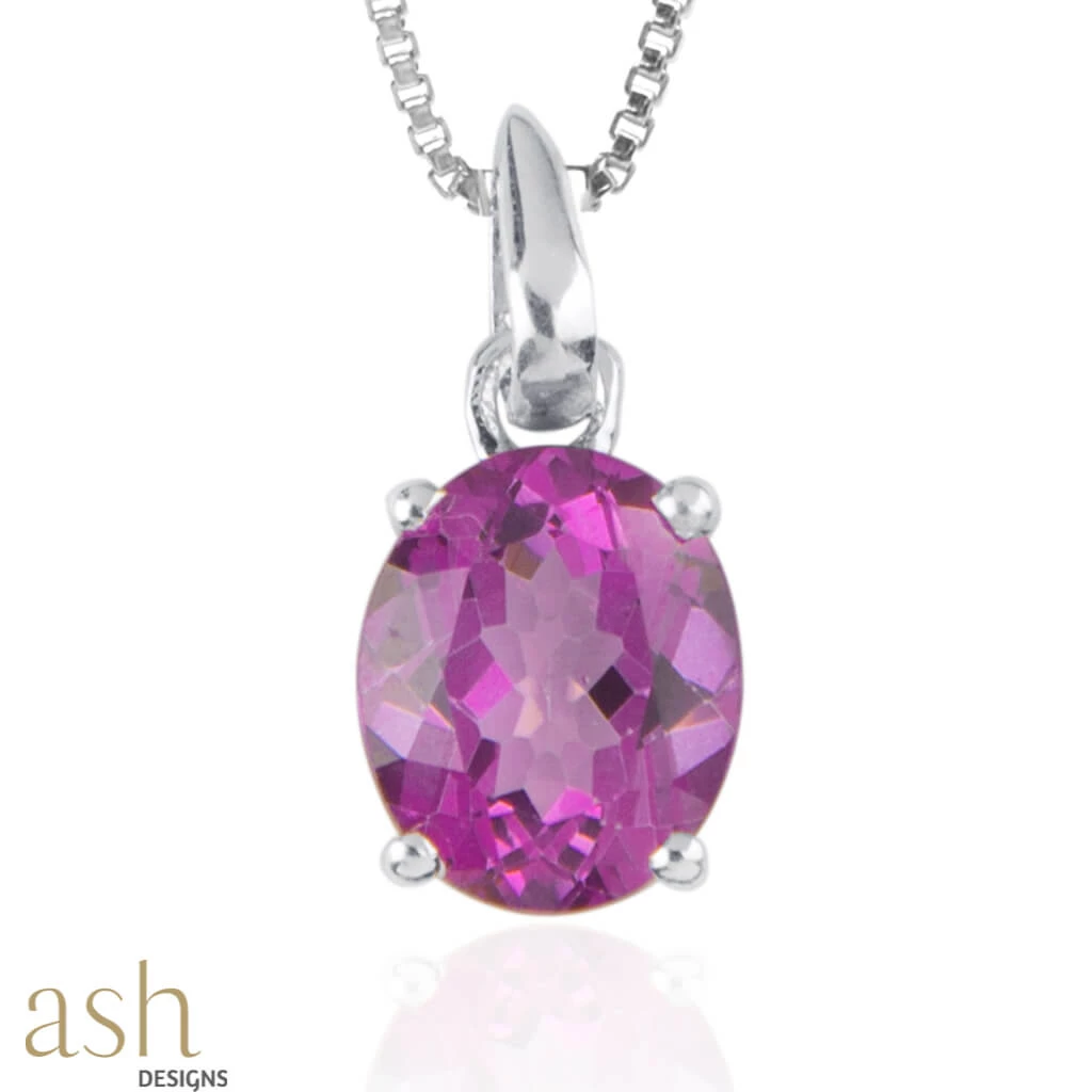 Presenting Isla Pink Topaz Pendant With Chain, an art deco-inspired oval cut pink topaz pendant set in 925 sterling silver. A single stone charm for minimalistic everyday wear. The pendant is perfect to pair with your everyday attire or to add to your special date outfit for something extra. Surprise your wife or girlfriend on her birthday with this beautiful gift.
