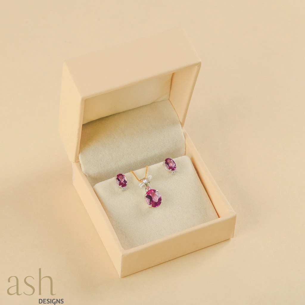 - Pink topaz stones set in sterling silver