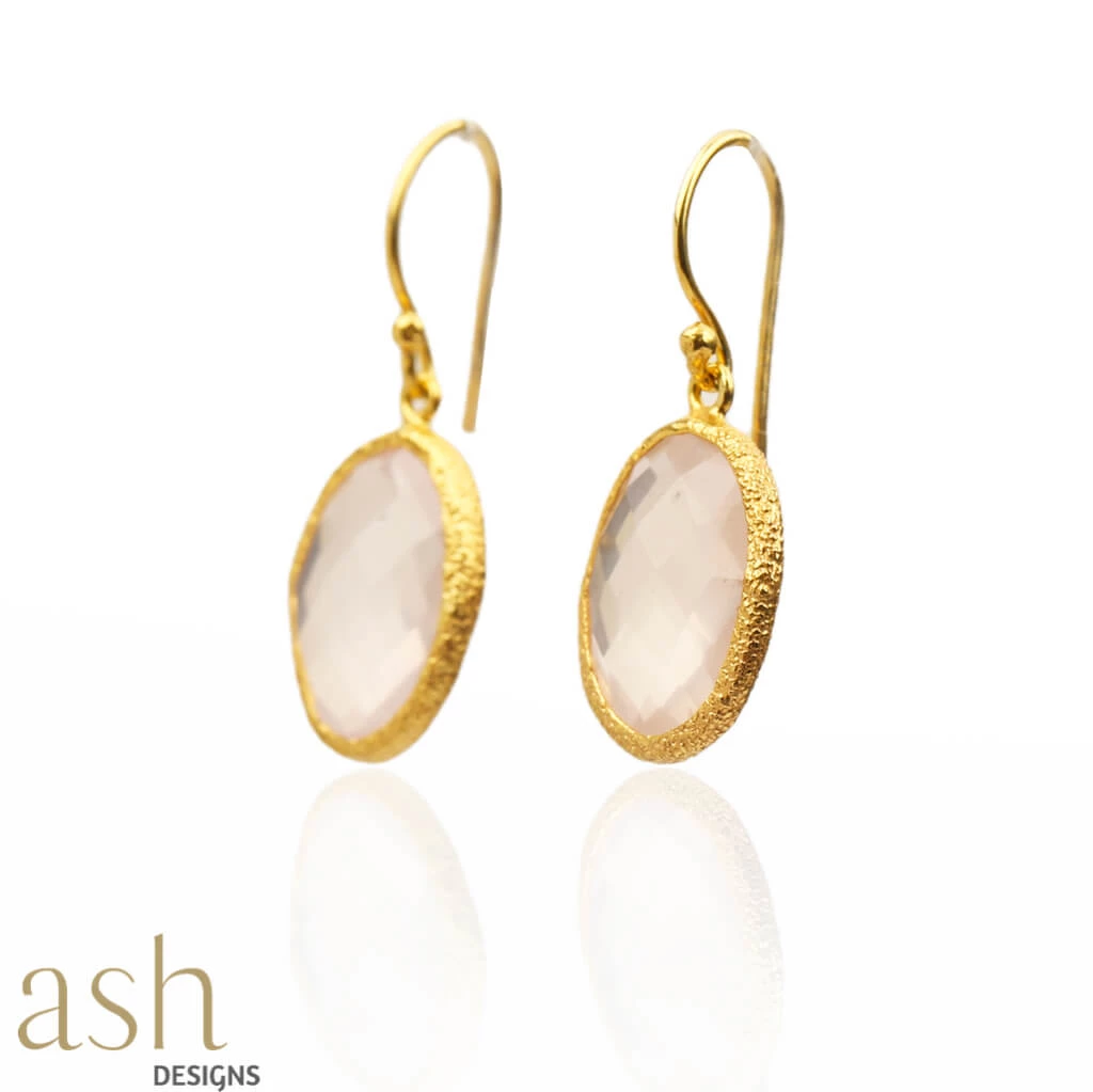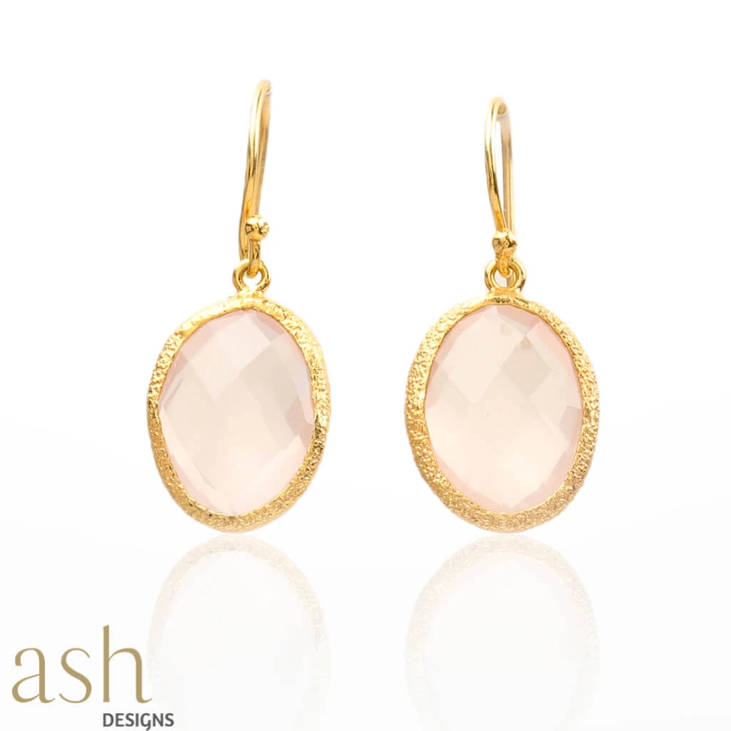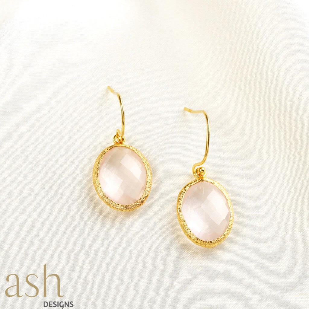 - Rose Quartz studs in 18k gold plated silver