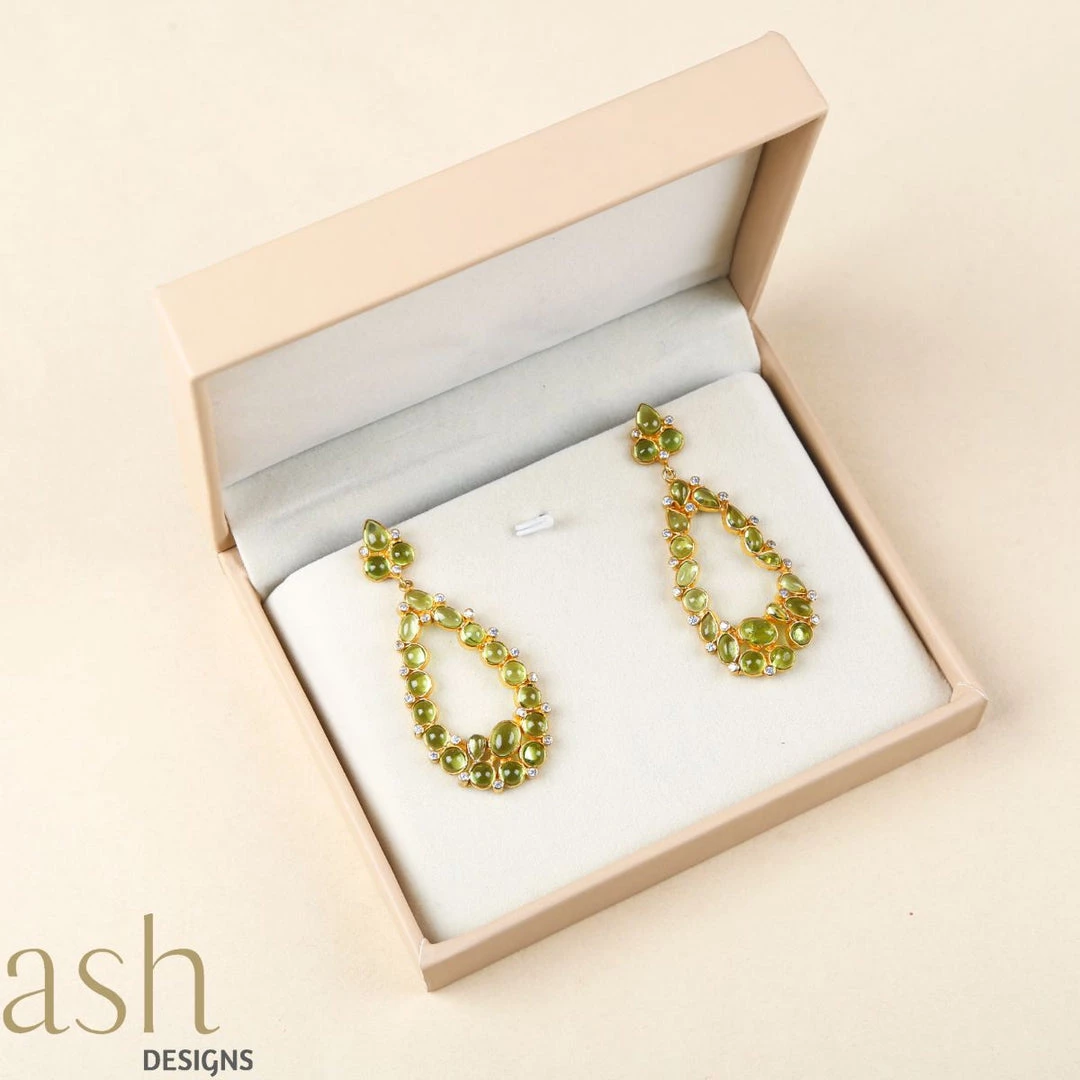 Inspired by the crowns of monarchy, these multi-stoned vibrant earrings will transport you to the courtyard of modern royalty. Royal Dream Peridot Earrings is an ensemble of fine cabochon cut Peridot in 18K gold plated silver. These multi-gemstone danglers are perfect for the weekend out with that special someone or the girl gang. It’s an imperial feast you can’t refuse!