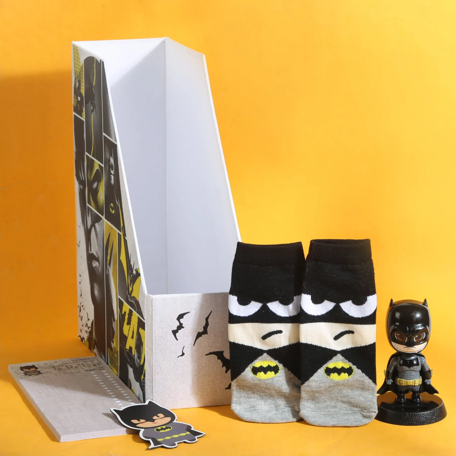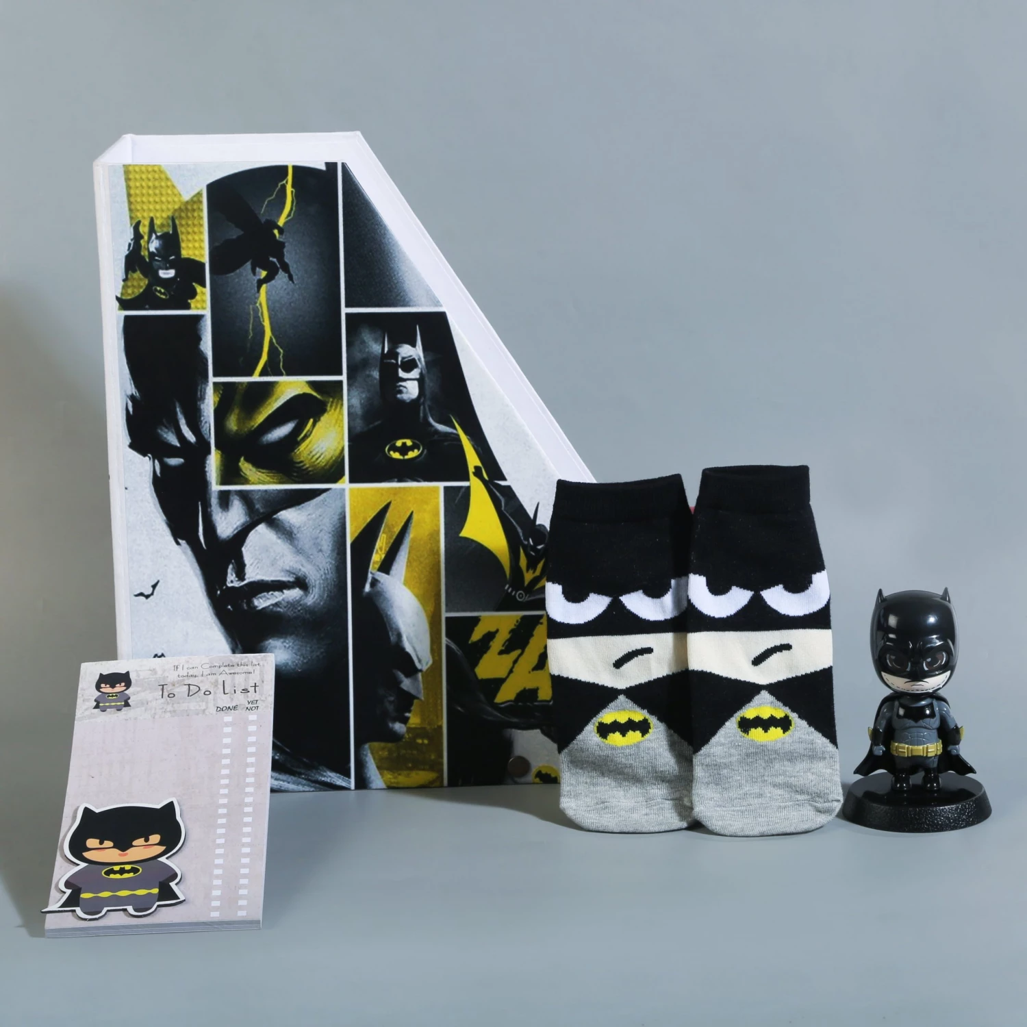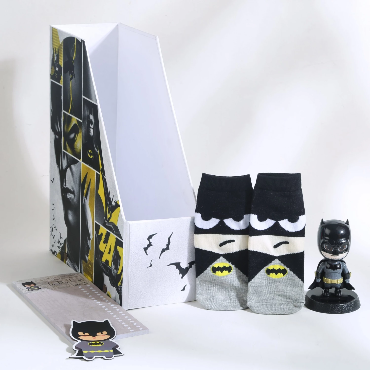 1 x Batman File Organizer, 1 x Batman Cartoon Socks, 1 x Batman To-do List with Magnet, 1 x Batman Solar Powered Bobblehead