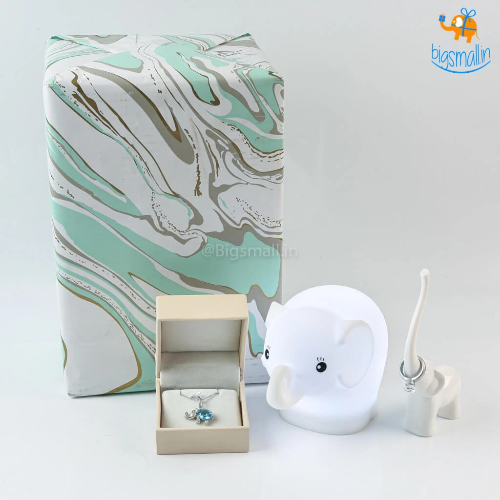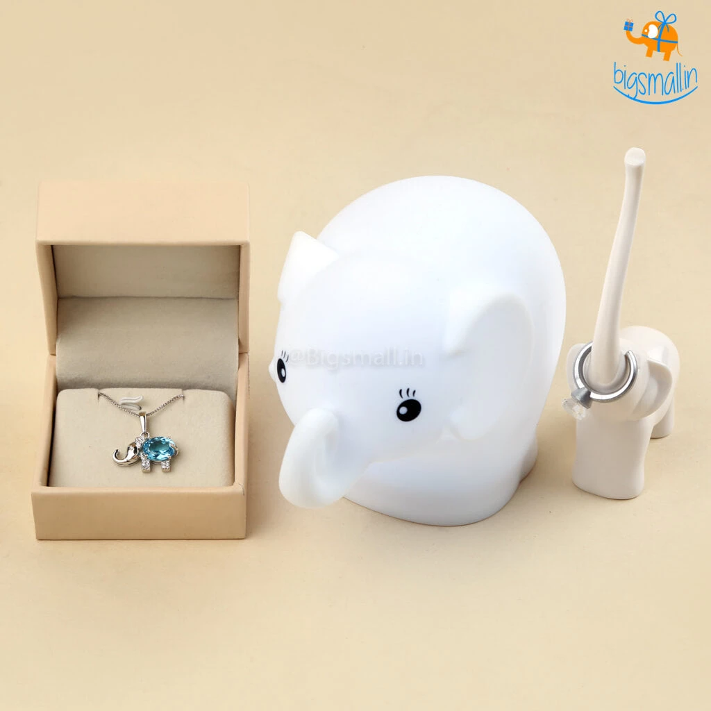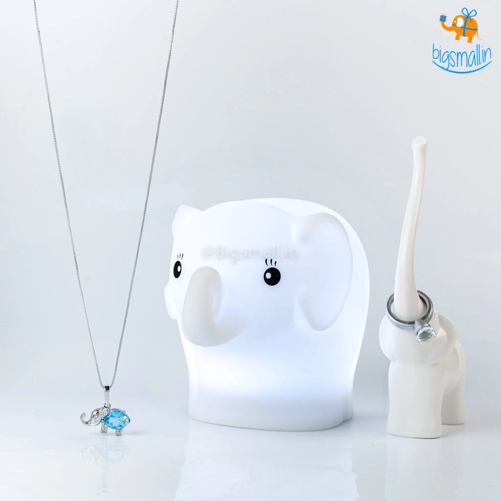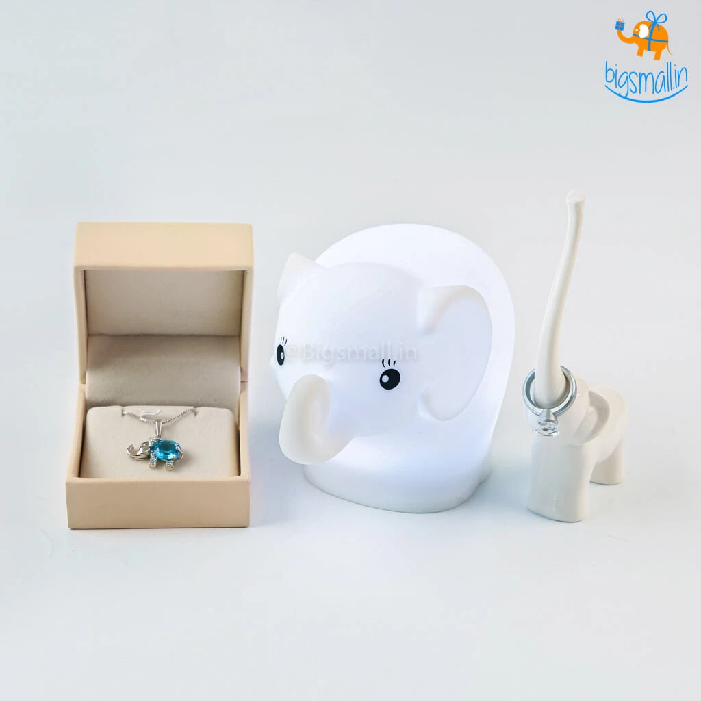 The adorable lill Elly is here to make your day. This special Elly themed gift set includes a very breathtaking Aliya Semi-Precious Pendant With Silver Chain, the cutest Elly Touch Sensor Lamp, and a very beautiful Elly Ring Holder. This love day spread some love with this lovely gift set.