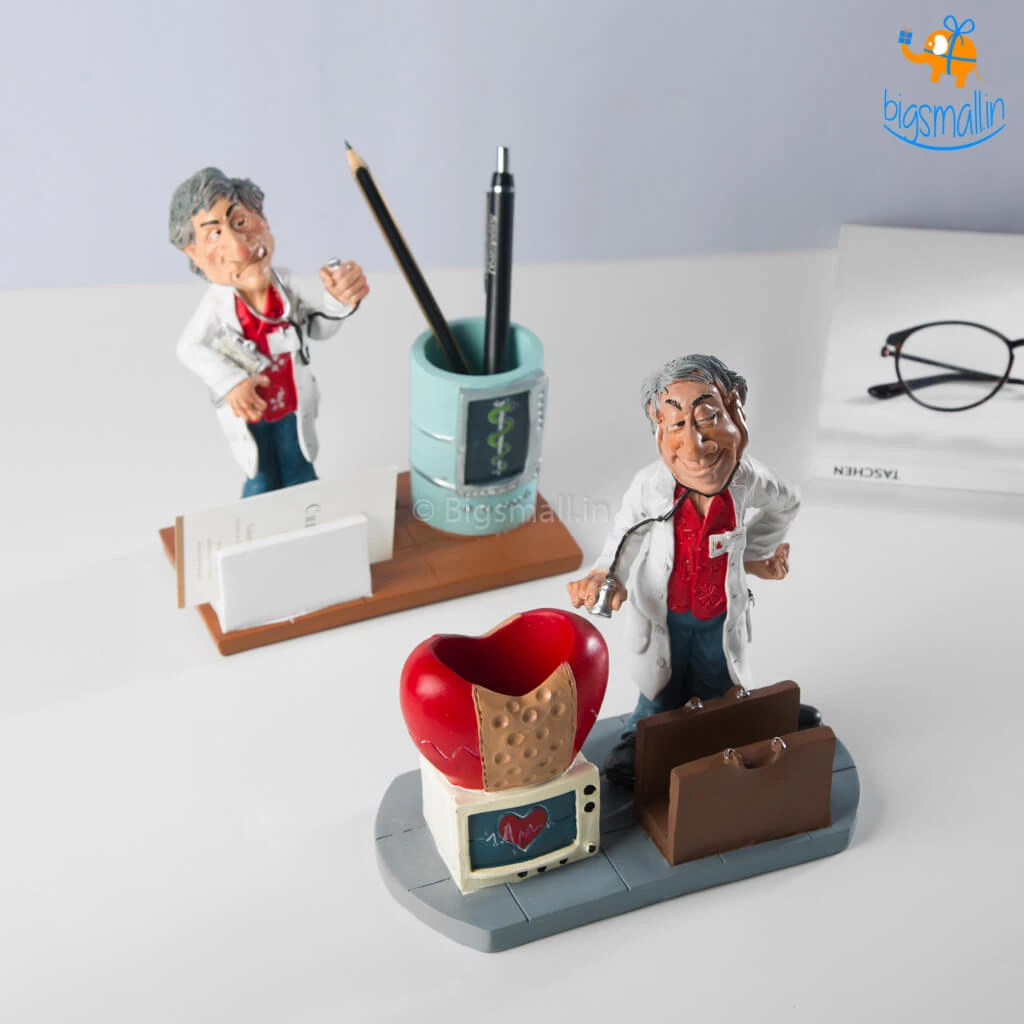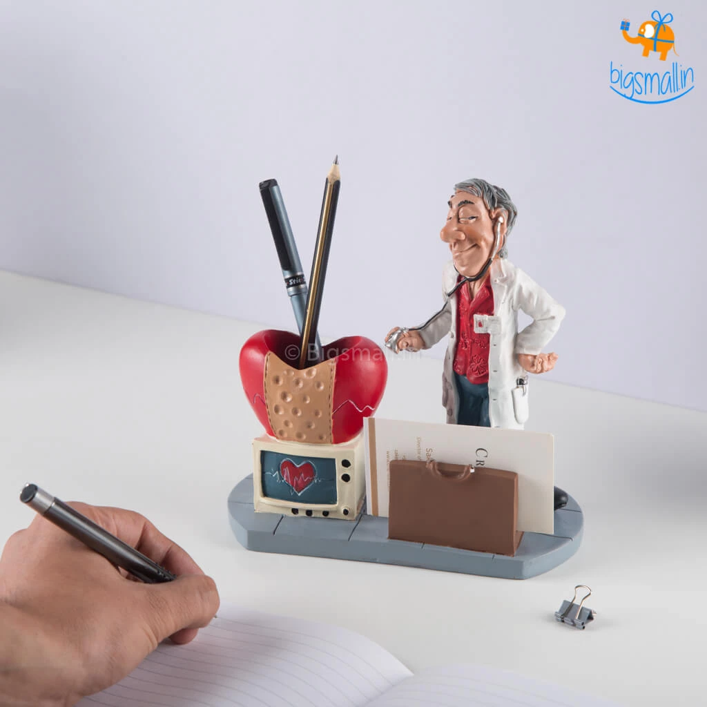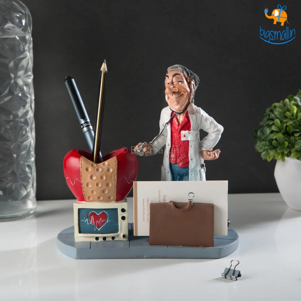 Gift your doctor friend this Doctor Desk Stationery Holder or organize your desk in style and feel like the boss you are. With a comical depiction of a doctor, the cardholder can hold your business cards all in one place. It is accompanied by a pen holder with a heart and a monitor or the Rod of Asclepius (depending on the variant). The comical yet striking design makes it an awesome choice for your work desk. A great gift for any occasions, you can also get it as a gift for the friend who just entered the college for their dream job or got the job.