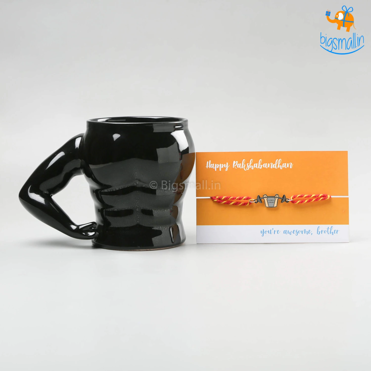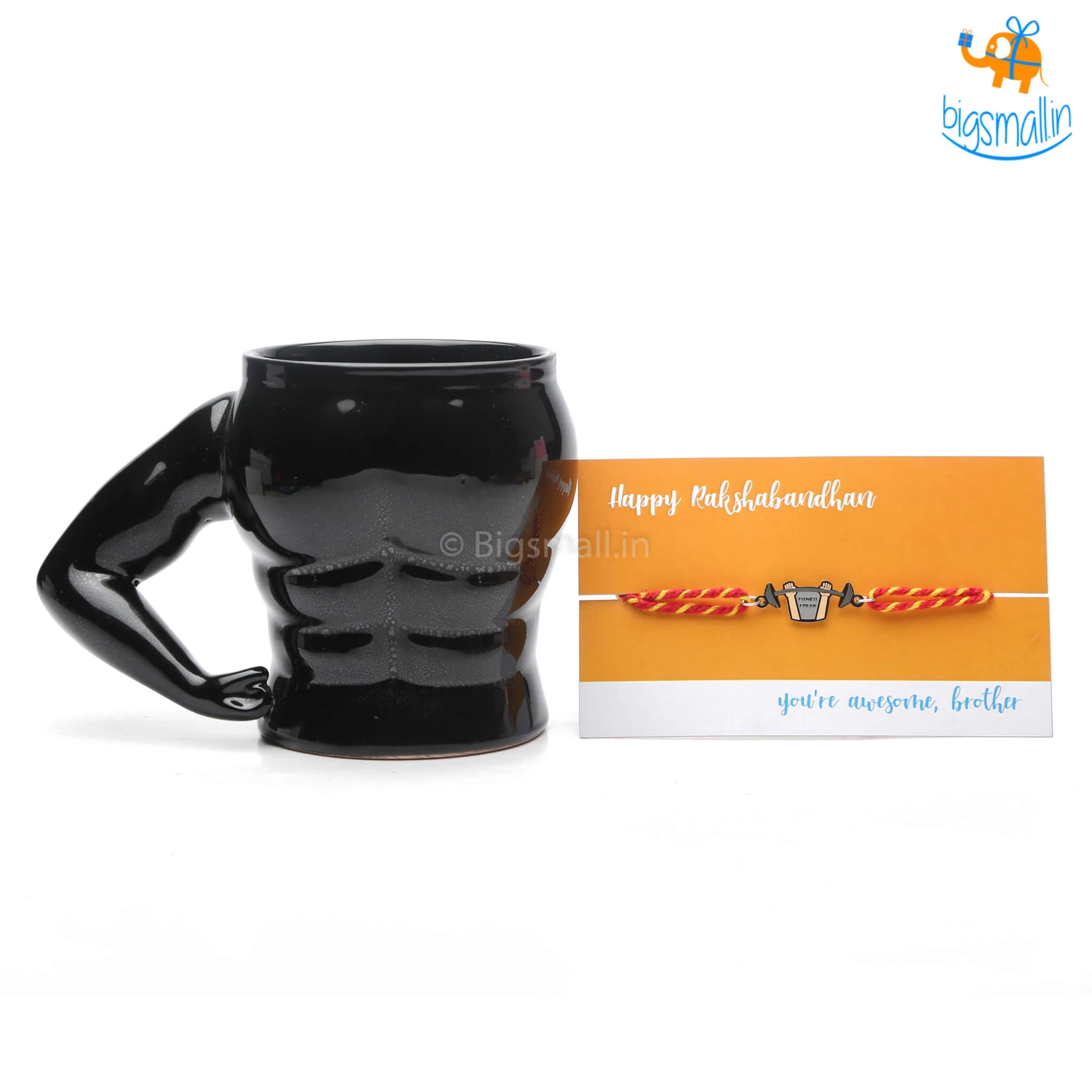 Presenting a gift as healthy as your brother. The Fitness Freak Bro Rakhi Gift Set is inclusive of a 3D Muscle Mug and Fitness Freak Bro Rakhi.