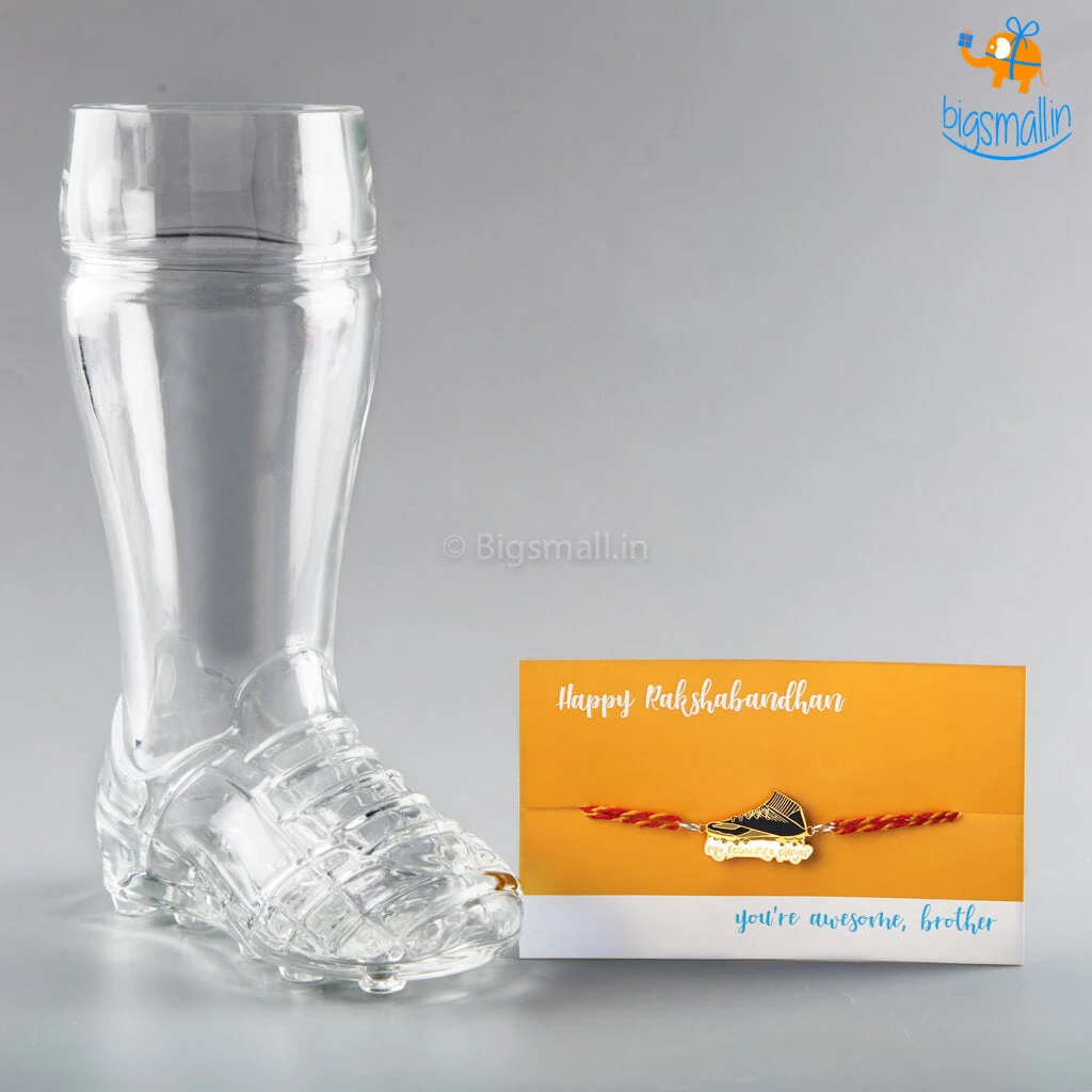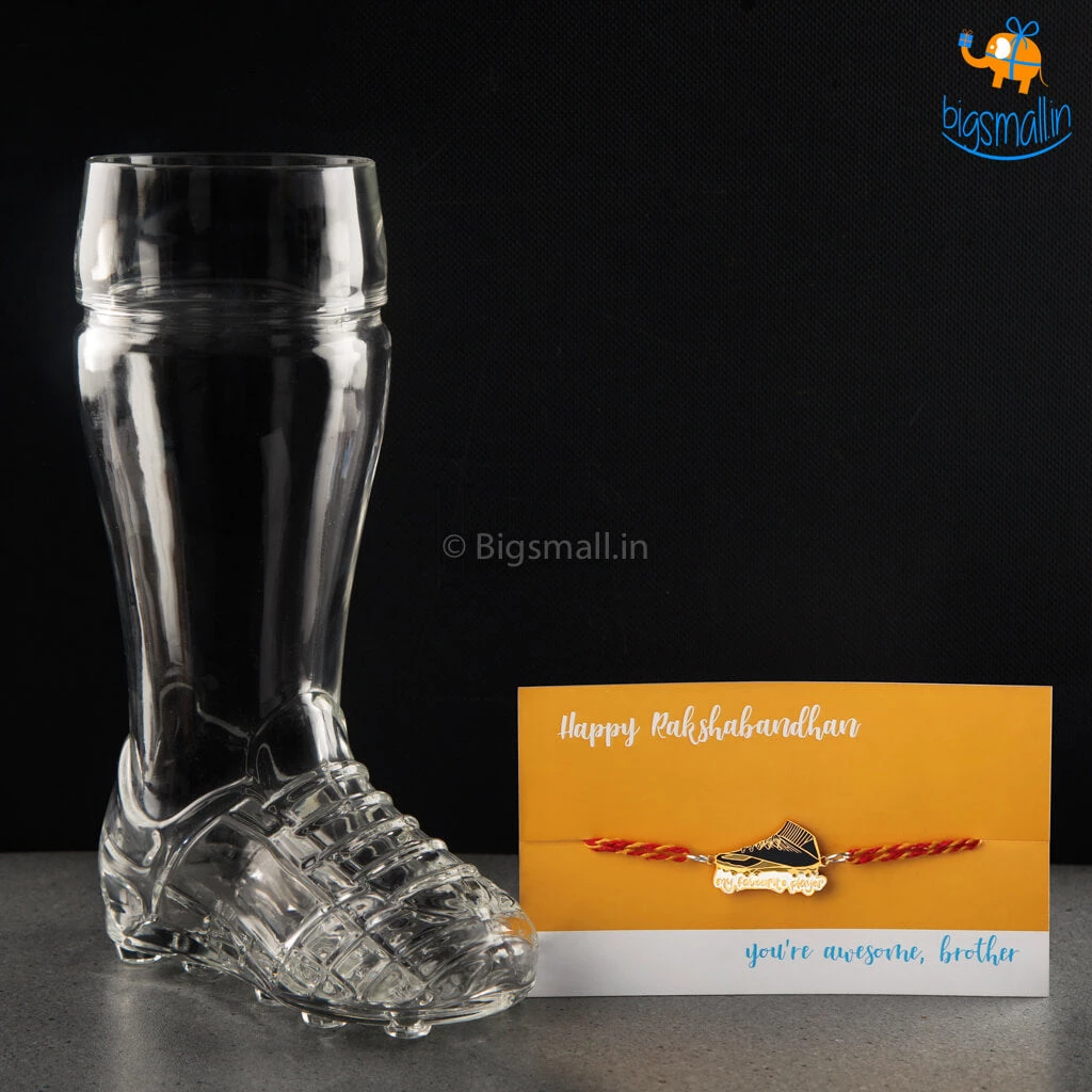 Presenting a gift set as cool and sporty as your brother. The Footballer Rakhi Gift Set is inclusive of Football Shoe Mug and My Favorite Player Rakhi.