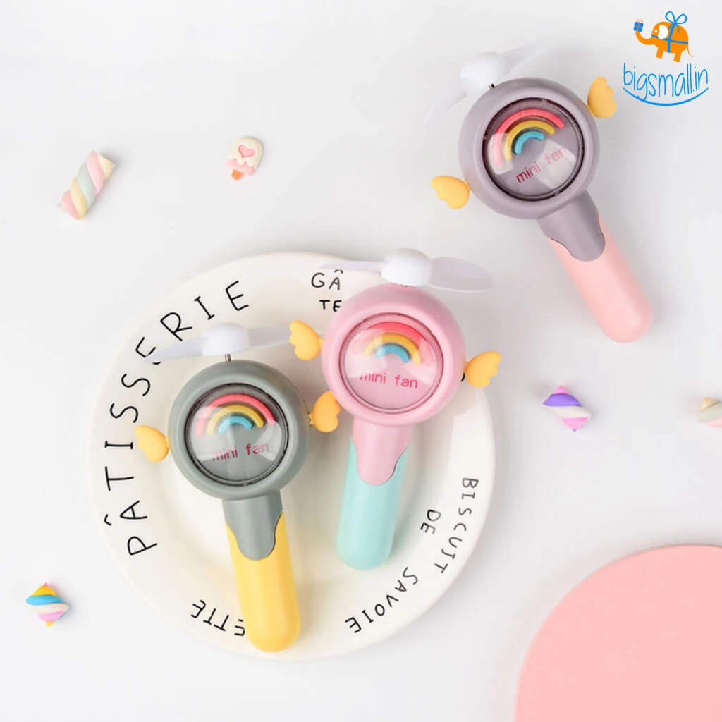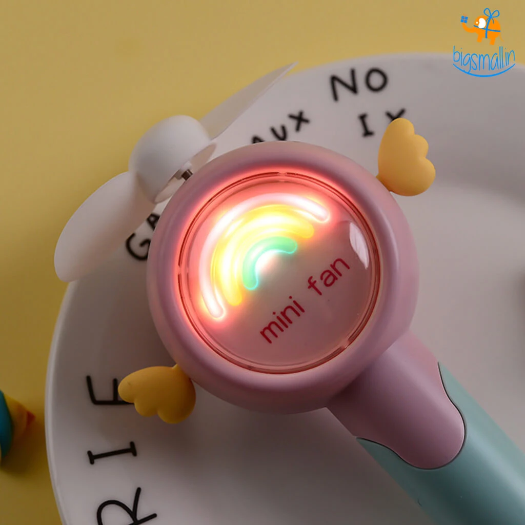 We bring to you the Hand Held Mini Fan to sweep you off your feet and charm you away. Working at three varied speeds according to your need, this adorable little fan lights up in the shape of the rainbow inside when you long press the button on the back. Plug-in the fan or turn on the light and feel like a diva while doing your makeup. A great birthday gift for the beauty queen of the group, you can get it for yourself to spice up your makeup bag. Its working time is 60 to 110 minutes and it comes with a USB cable.Â