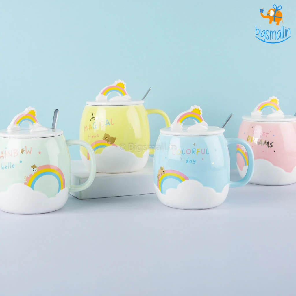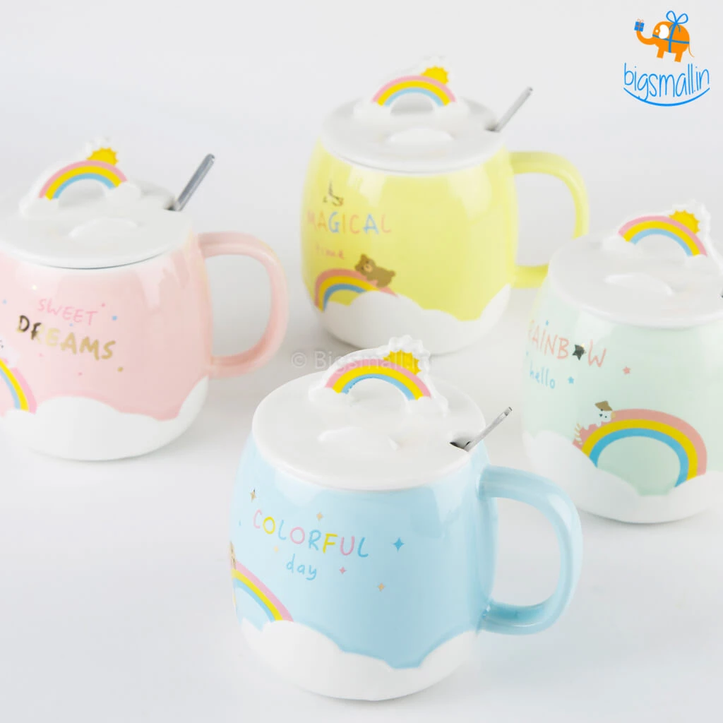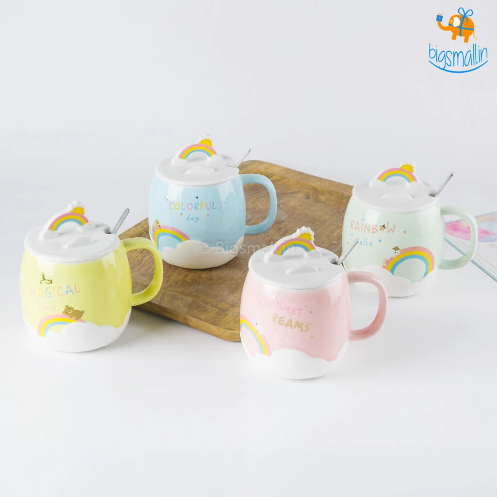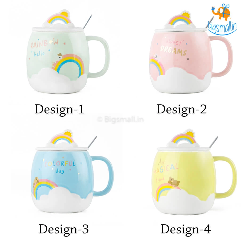 1 x Rainbow Mug With 3D Lid & Spoon (Choose variant)