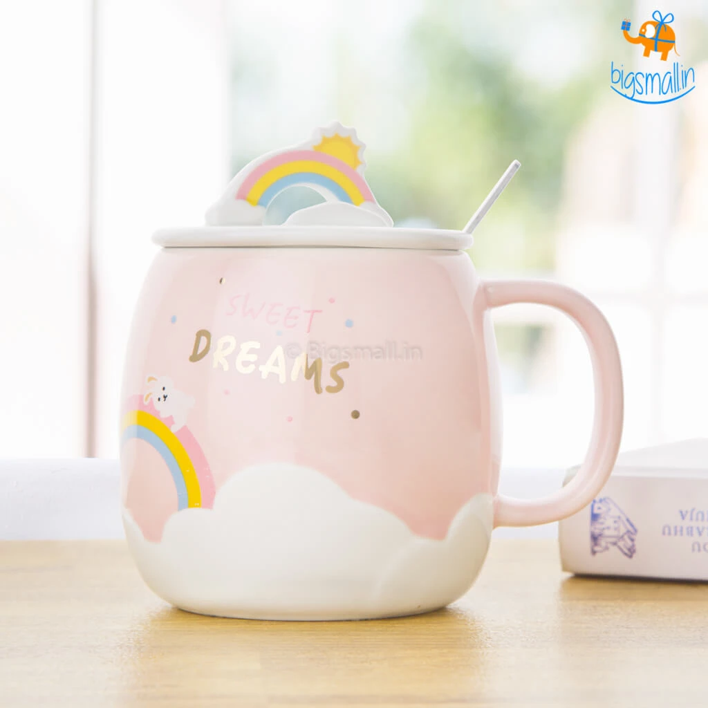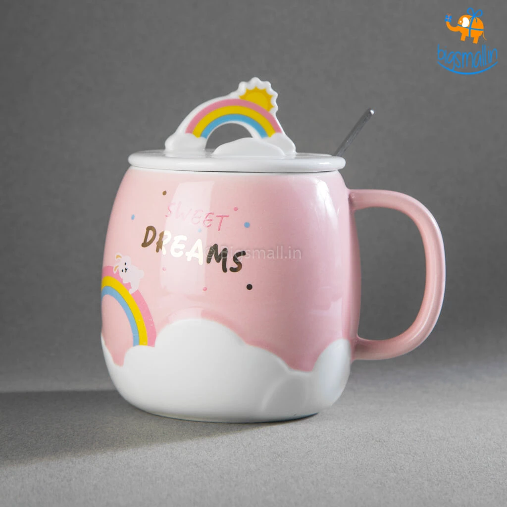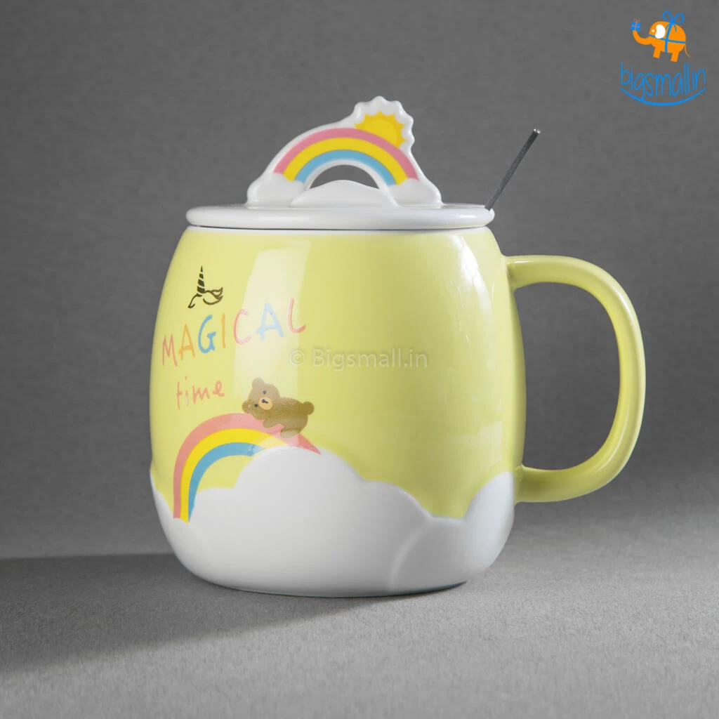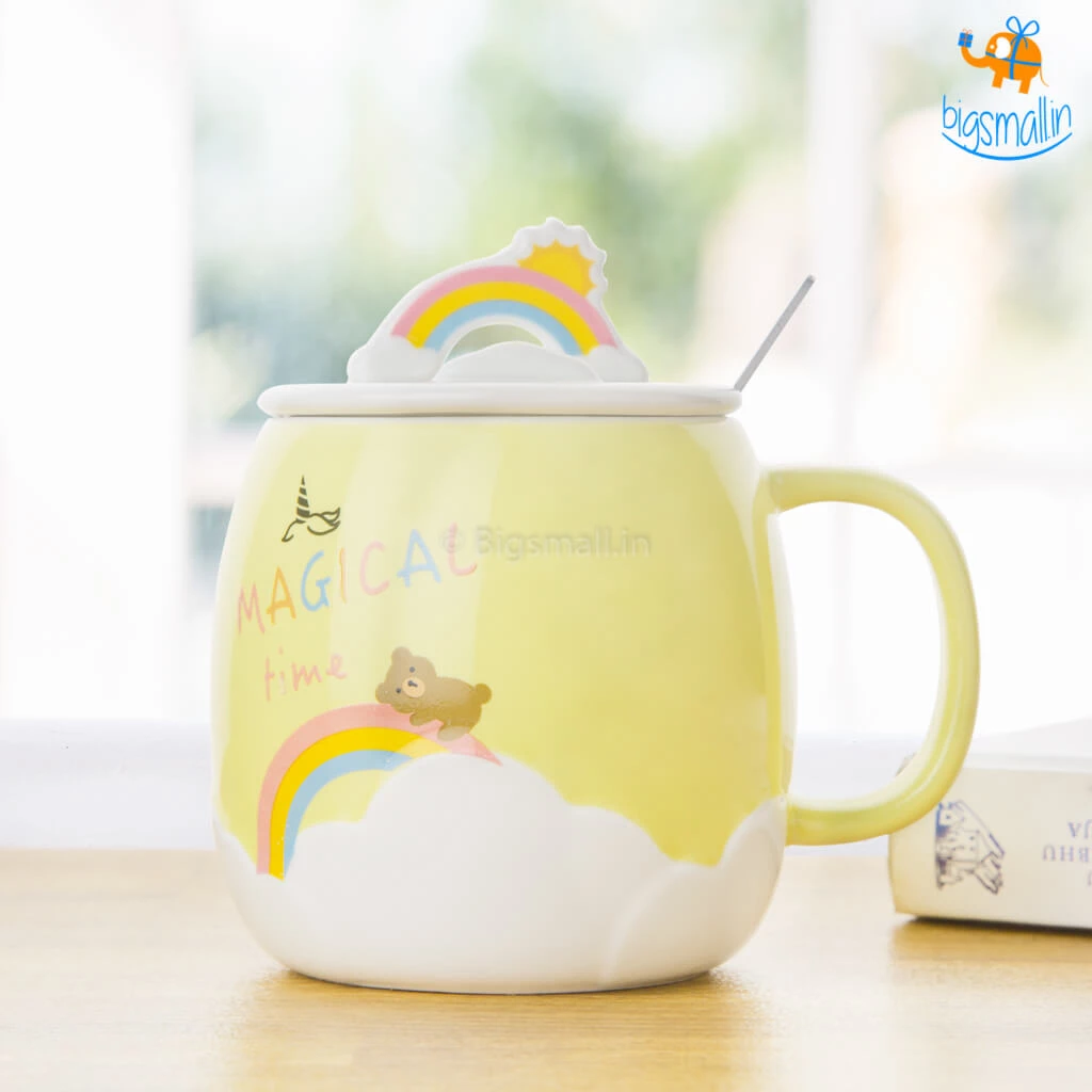 Wake up to a tasty cup of coffee in this magical rainbow mug and start your day with magic. The cute design and soft colors will make you go awww! The mug features a 3D rainbow in the clouds on top of the lid. Your drink will stay warm and you can enjoy it comfortably. A great gift for a dreamer, get the mug for yourself if you love all things cute and soft.Â