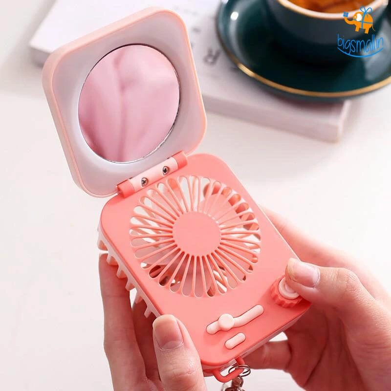 Presenting Makeup Mirror With LED & Fan, a super cute portable mirror to fix your makeup on the go. Plugin the fan or turn on the light and feel like a diva while doing makeup. It comes with a re-chargeable battery that lasts up to 2-3 hours. A great birthday gift for the beauty queen of the group, you can get it for yourself to spice up your makeup bag.