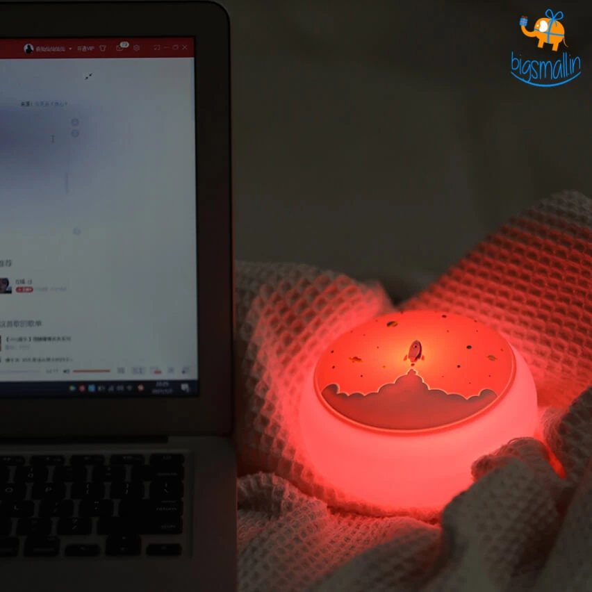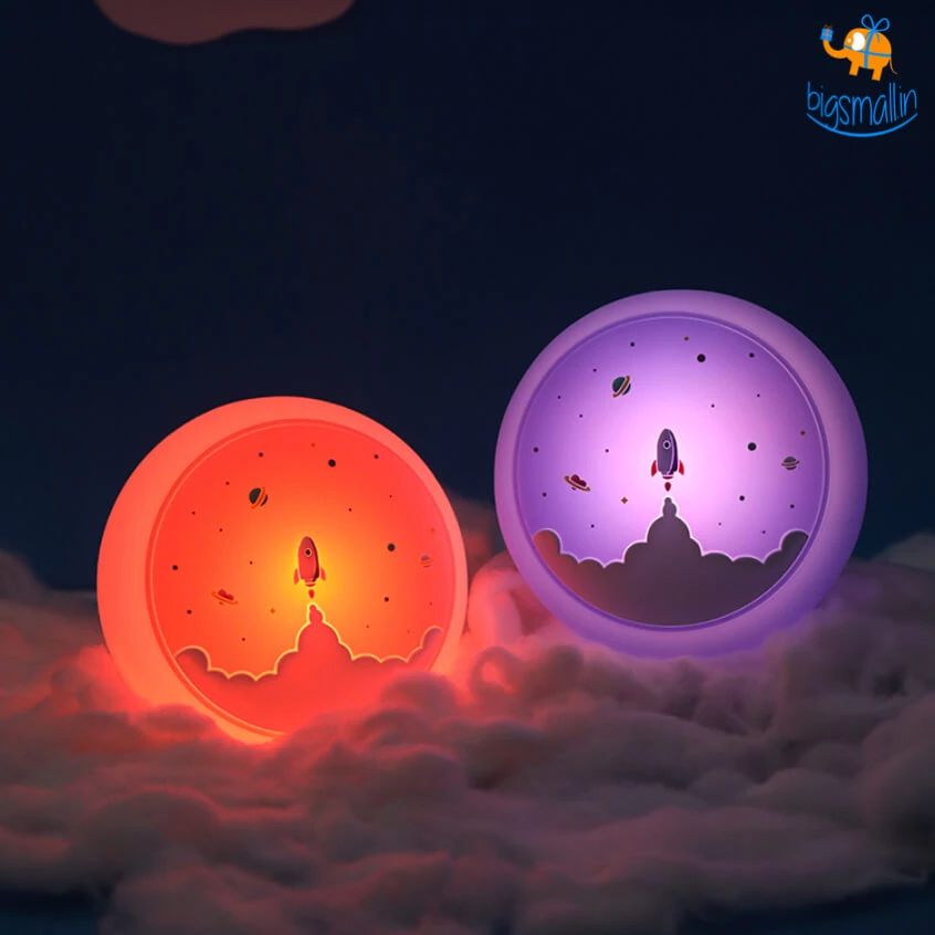 - Night lamp in the shape of a starry night with a rocket blasting off