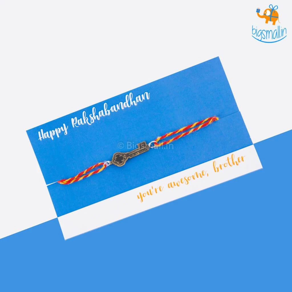 Probably while growing up with your sibling, you were both tattle-tales and loved watching the other being held responsible for your own f$ck ups. But now, things have taken a turn, for the better and you can safely confide in your brother with all your secrets. Be it sleepovers at your besties place or late night parties in college, he would willingly cover your trails. This rakhi honor the ineffable bond you share with your sibling with the personality specific Secret Keeper Rakhi. With a quirky brass embellishment in the shape of a key having the phrase “Secret Keeper” etched on it.