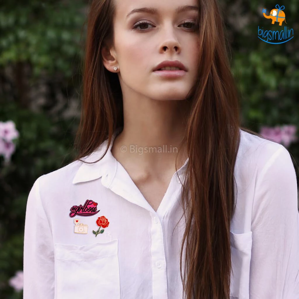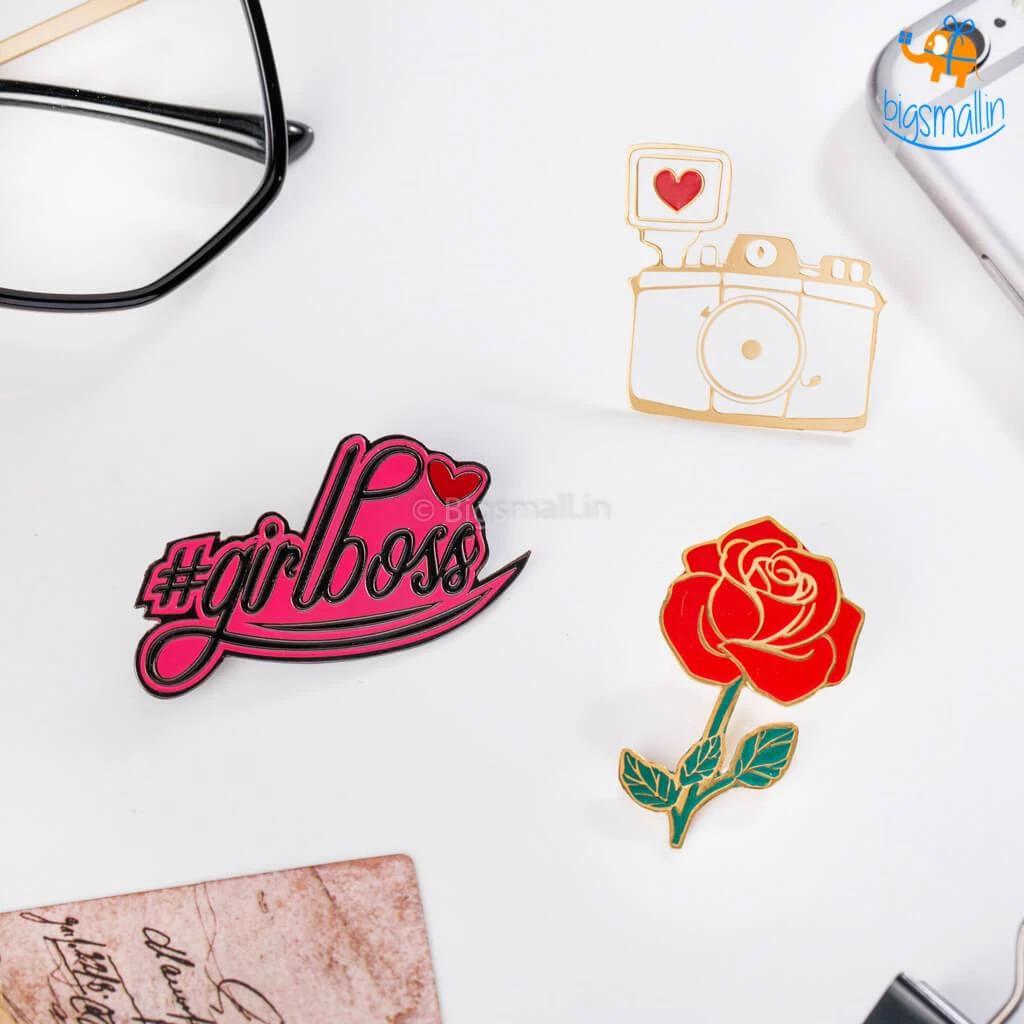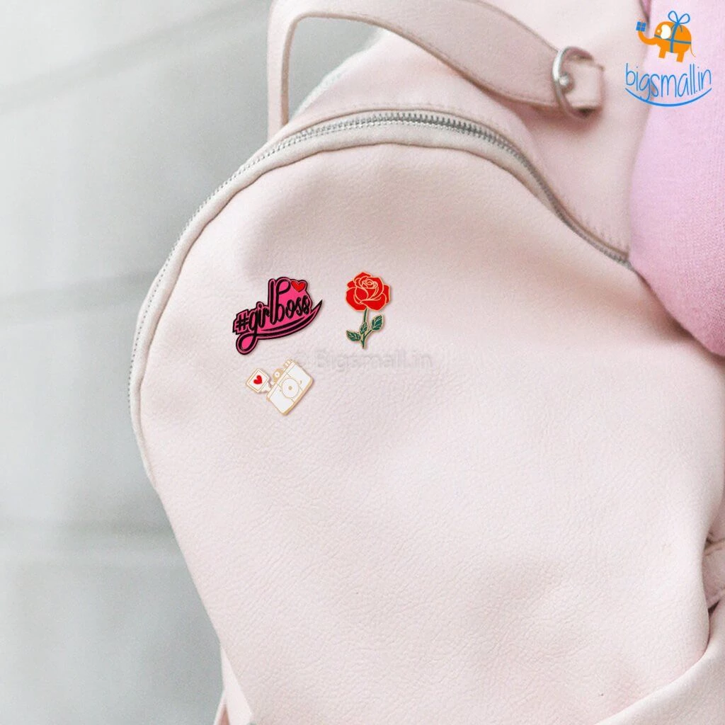 - Set inclusive of – The girl boss pin, white camera, a red rose