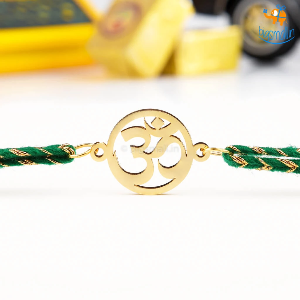 If your brother is the religious one in the family and believes in equal rights for every living being, this is rakhi is perfect for him. Celebrate your undeniable strong bond this Rakhi season with this personality-specific Rakhi. Om Metallic 3D Rakhi comes with a metal sheet embellishment with the symbol of Om cut in it.