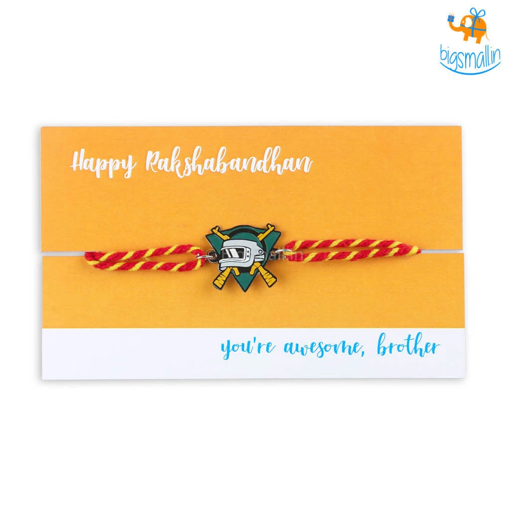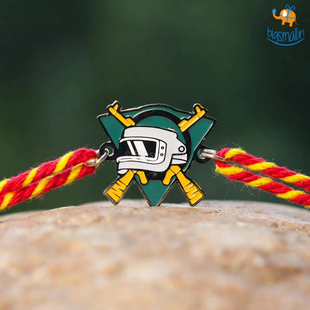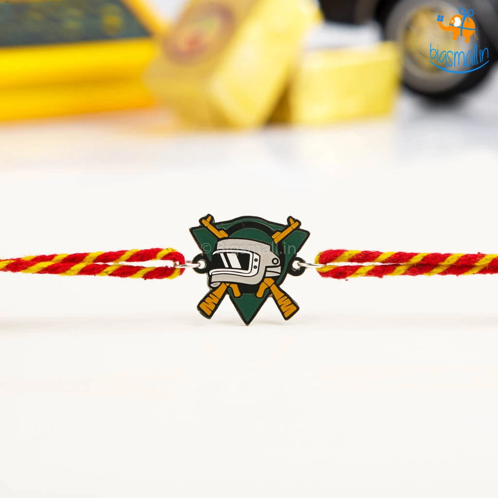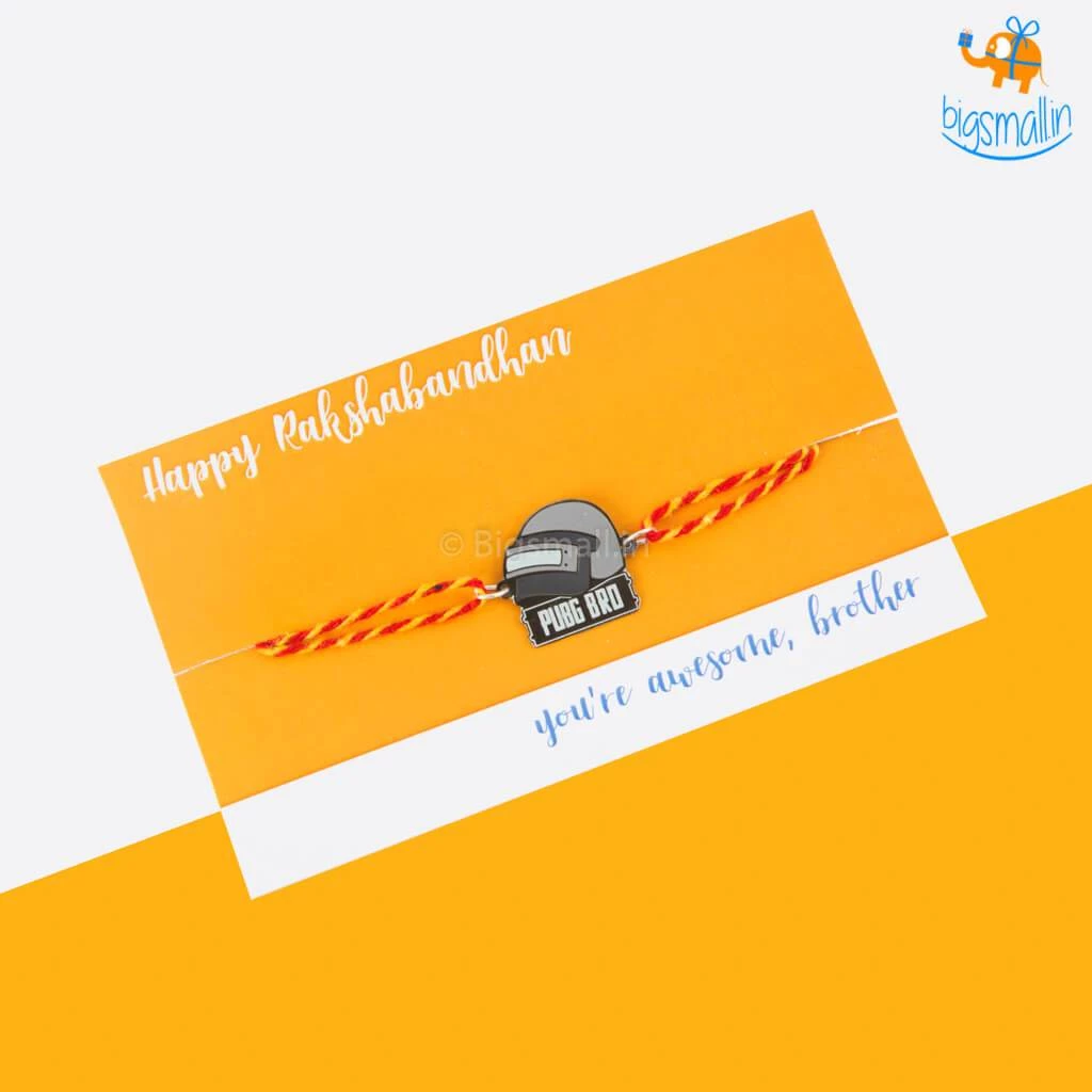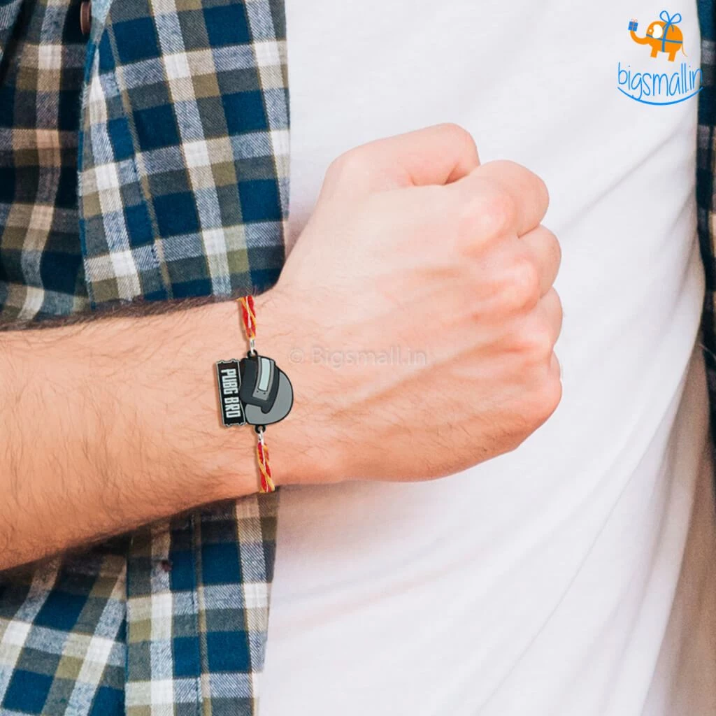 For the brother who loves chicken dinners and not just the real ones, we bring to you the customized, personality specific PUBG Bro rakhi. Complete with a brass sheet embellishment in the shape of the iconic helmet saying PUBG Bro, this personality specific rakhi is designed to rock the rakhi scene this year! Gift one to your PUBG crazed brother and watch him jump with glee.Â