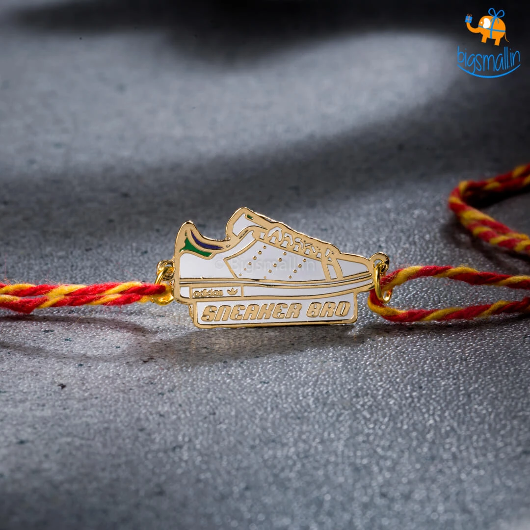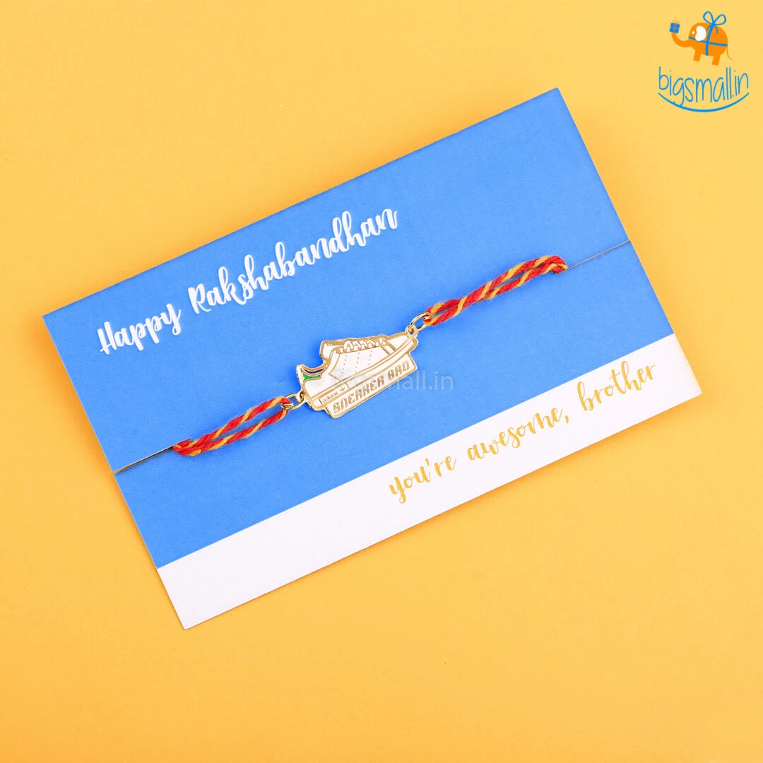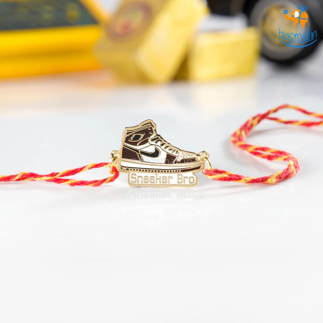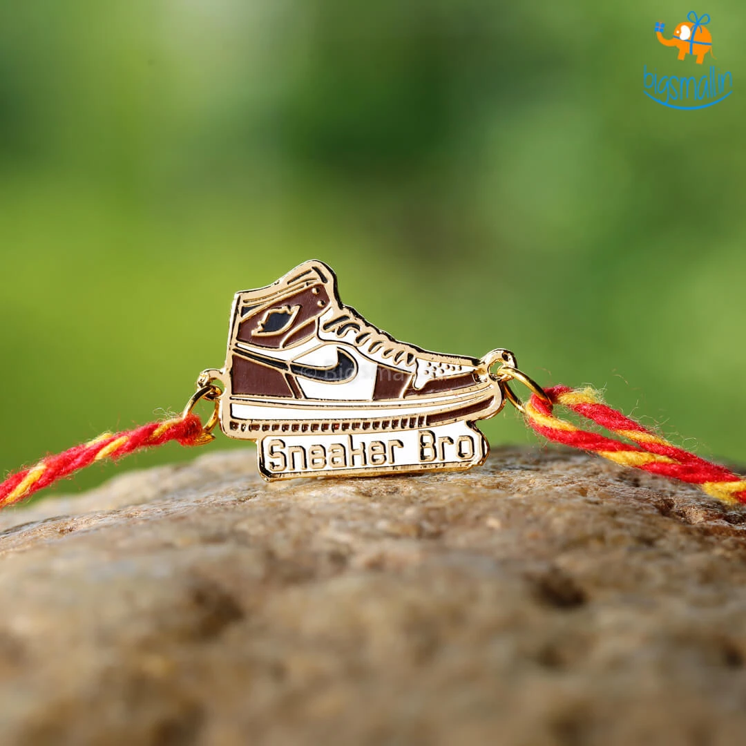 Does your brother love collecting sneakers as a hobby and tell the world about it? Or maybe he has a little bit of a hoarding problem and never accepts it? Whatever the case may be, you still love him. Celebrate his love for sneakers this Rakhi season with this personality-specific Rakhi. Sneaker Bro Rakhi that comes with a metal sheet embellishment in the shape of a – you guessed it – sneaker. Do let it slip that you have an eye for a certain shoe, maybe he’ll finally give it to you.