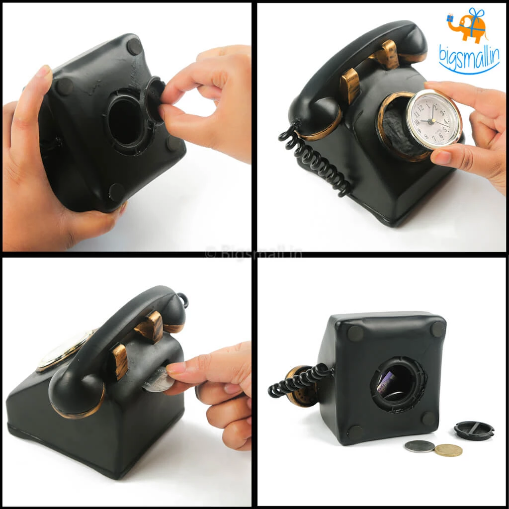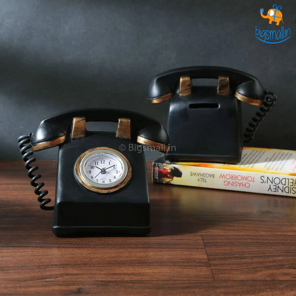 Looking for a quirky clock to adorn your mantelpiece? Pick up the cool Retro Phone Clock with Money Bank. Made of resin, this unique clock also doubles up as a piggy bank. Make a housewarming gift of it or order one for your friend who loves all things vintage.