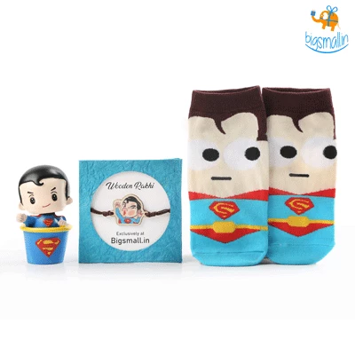- Superman Wooden Rakhi, Superman Cartoon Socks, and Superman Ceramic Bobblehead