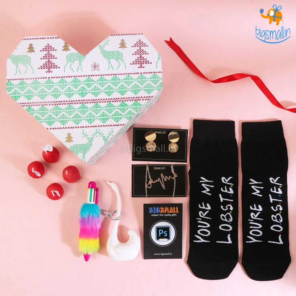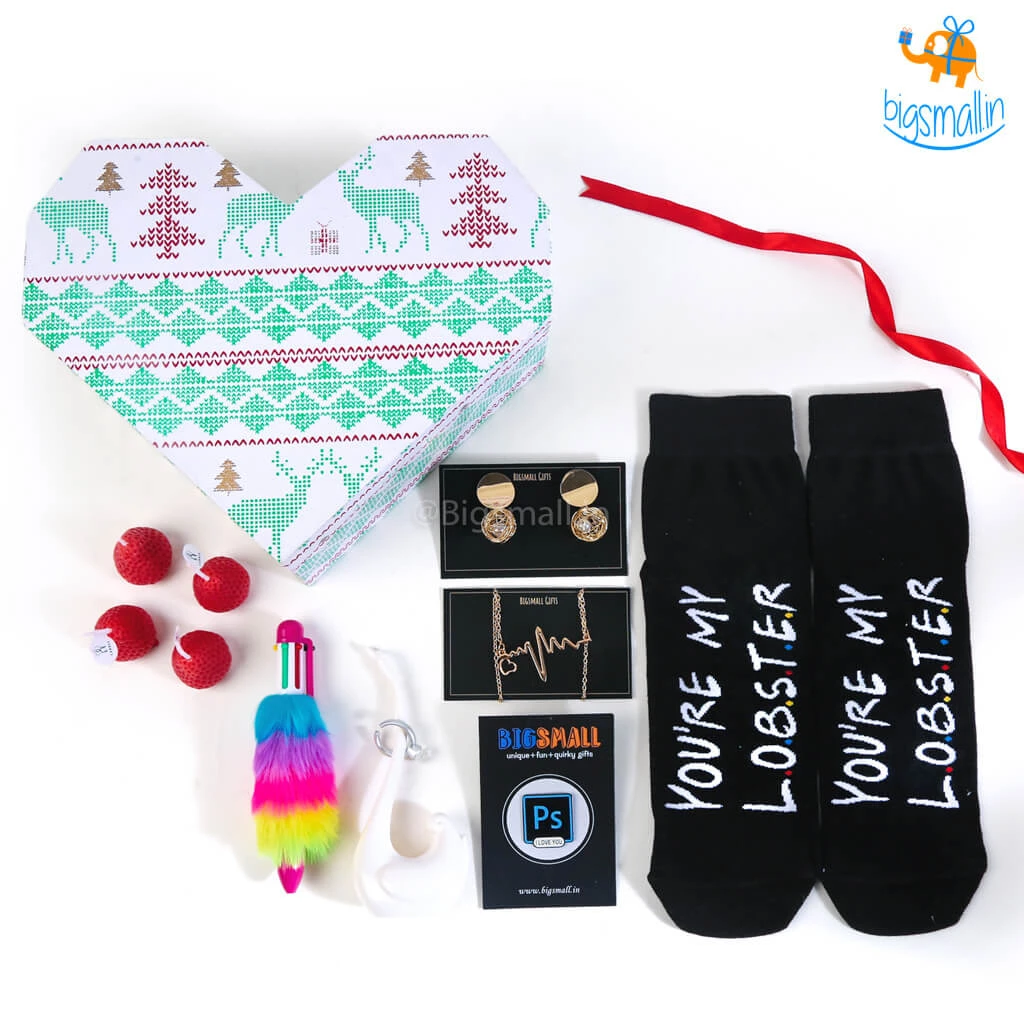 It is the season of love! Love is everywhere! And of course you just know when they’re your lobster, don’t you? You do! Give all that unsaid love for them a very special expression. Let your actions speak for you. Okay, so the gift set includes Swan Ring Holder, PS I Love You Lapel Pin, Fiery Pearl Earrings, Heartbeat Necklace, Multicolored Fur Pen, You Are My Lobster Socks, Strawberry Candles – Pack of 4, and a beautiful Heart Shaped Storage Box to hold all of these precious things! It couldn’t get any better. So? What are you waiting for? Go make her yours!
