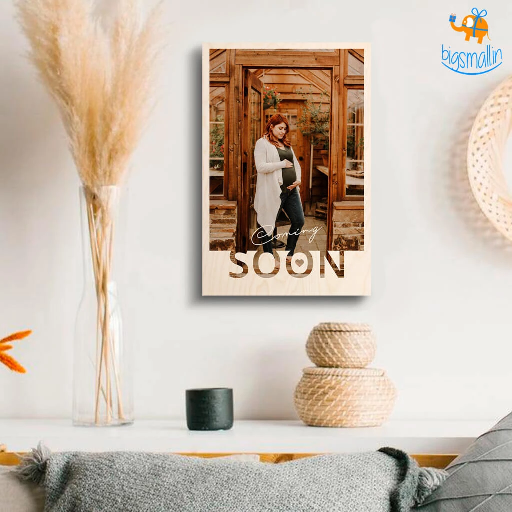 1 x Personalized Baby Coming Soon Wooden Print Frame