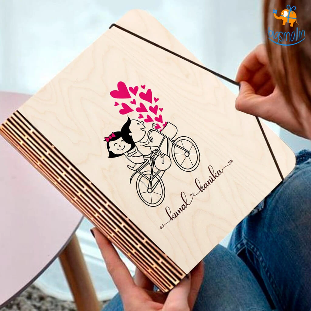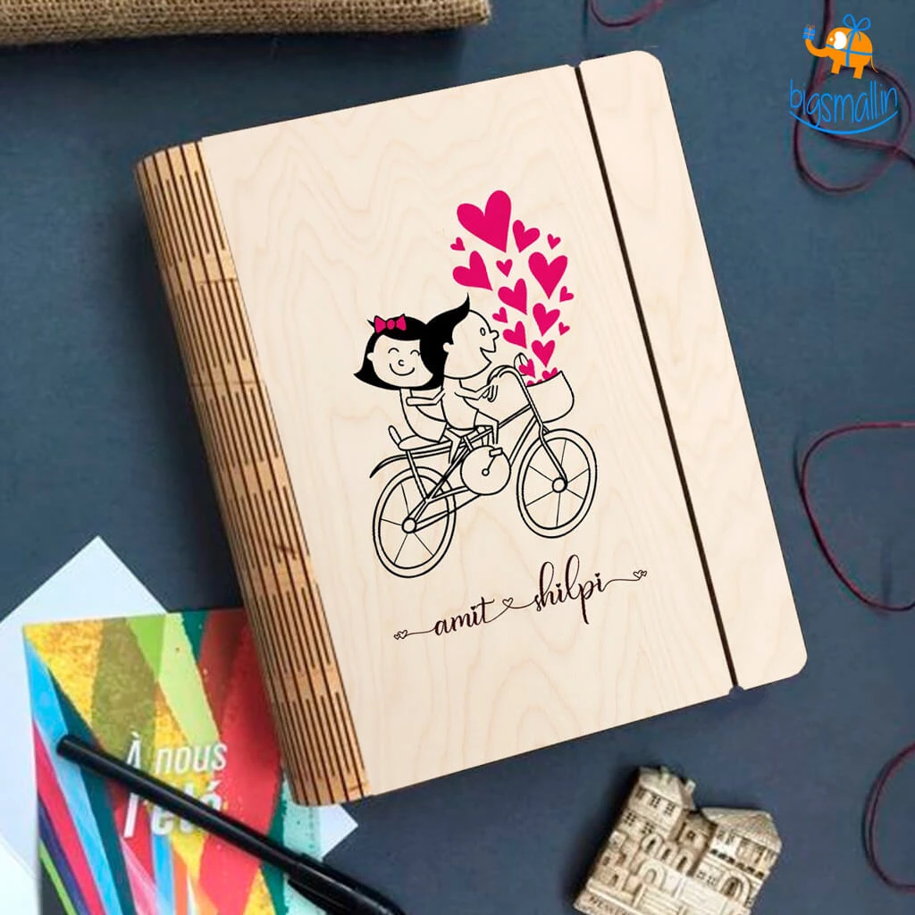 1 x Personalized Cycling Couple Wooden Binder With Elastic Strap