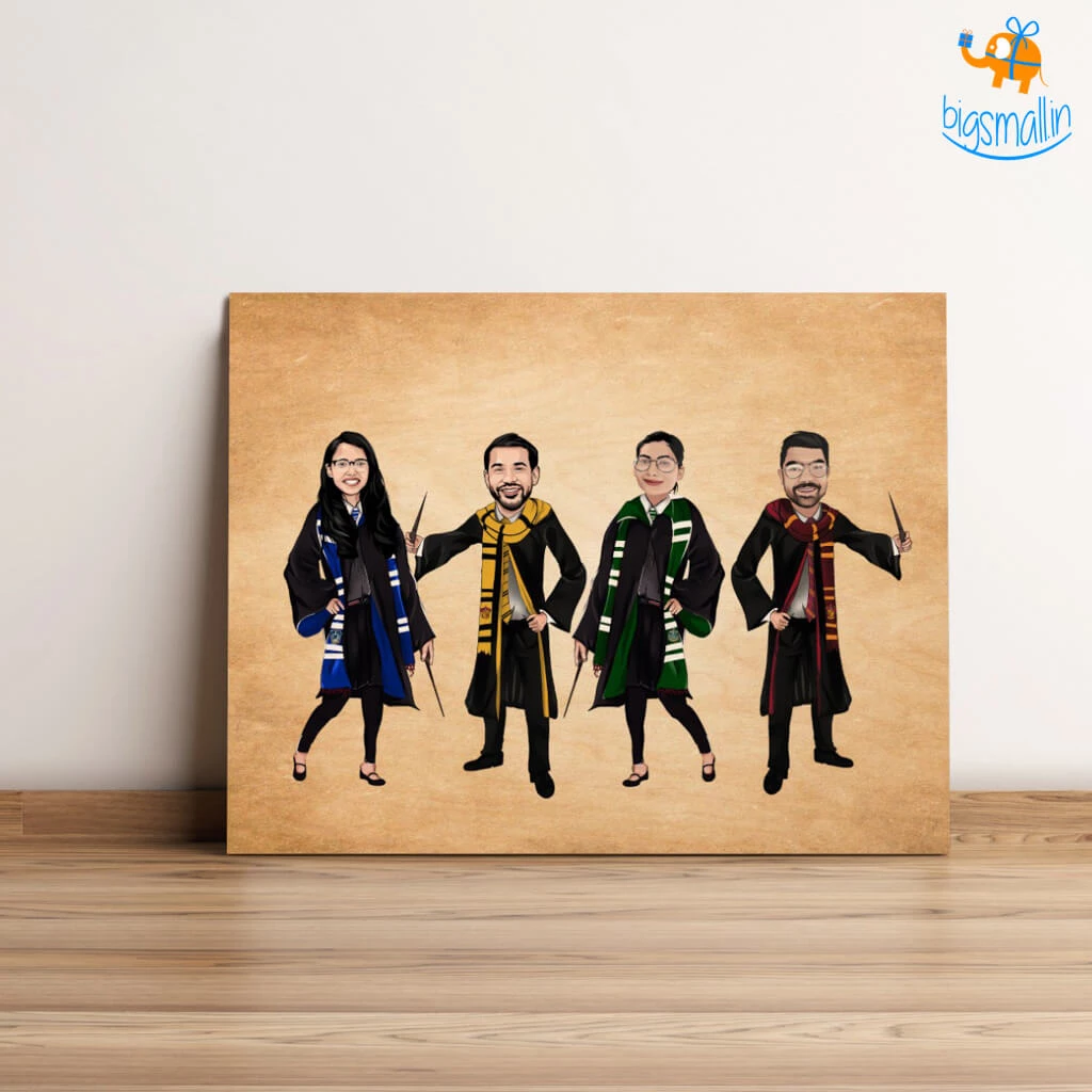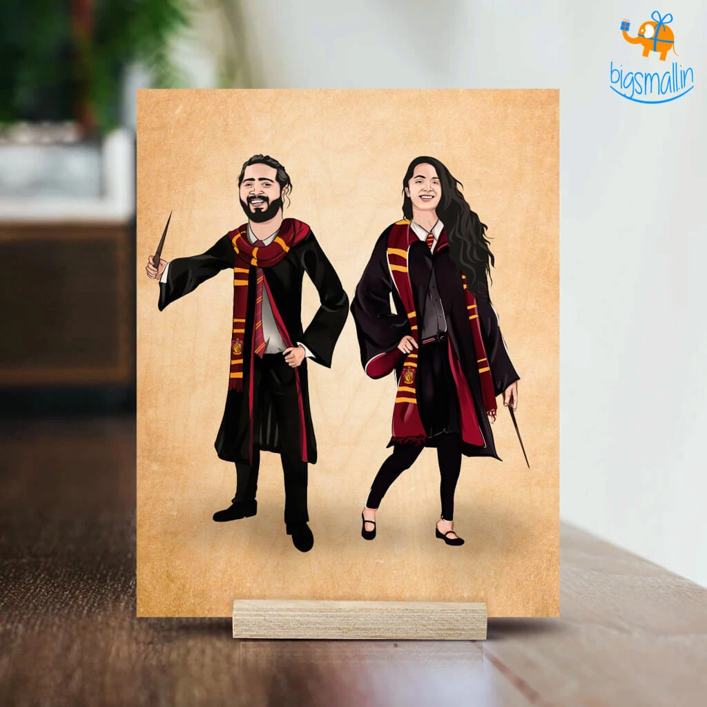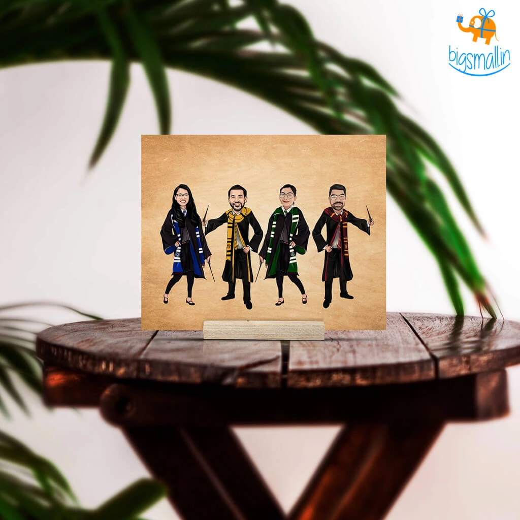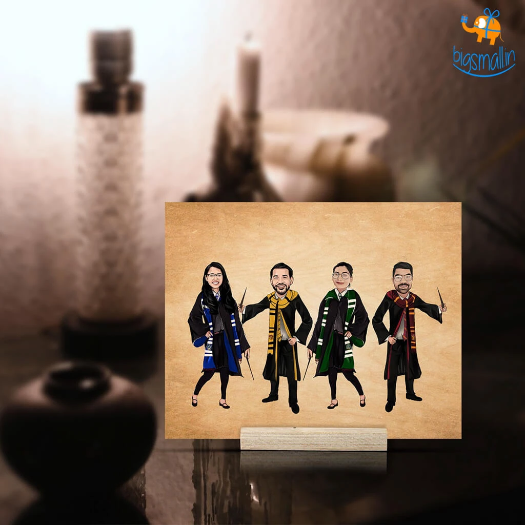 Do you wish you were a part of Hogwarts? Studying about dark potions and watching Harry get into trouble? Bored of your muggle life? Well, the Personalized Harry Potter Caricature Wooden Portrait is here to make you feel like a fun part of the wizard school! It is a freestyle vector art where you send us your best photo and we transform it into a cartoon avatar. The body remains the same but the face gets the caricatured aspect and becomes apt to be a fun wall art piece. The caricatures are then printed on a wooden frame. The ideal gift from the Harry Potter collection, a must have for every Harry Potter fan. Buy Harry Potter theme gift right here for your true wizard buddy.Â