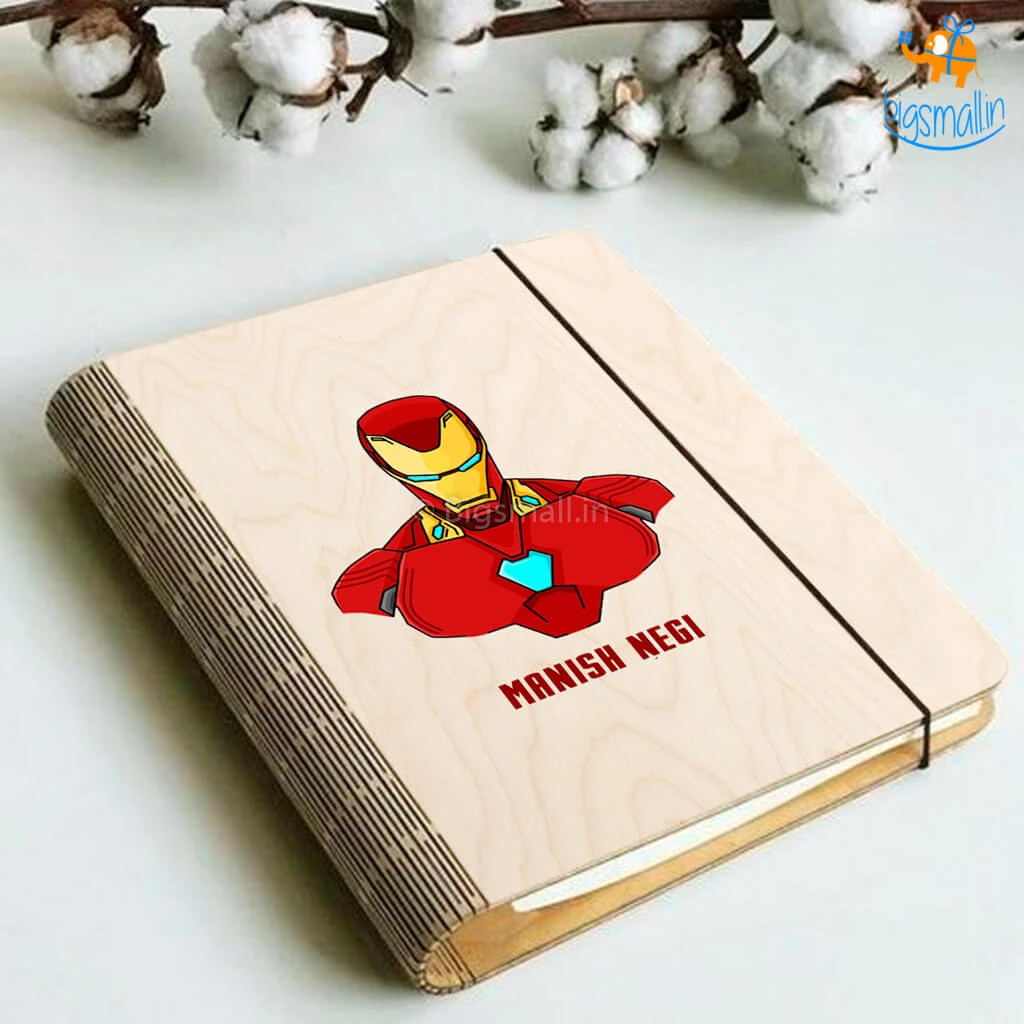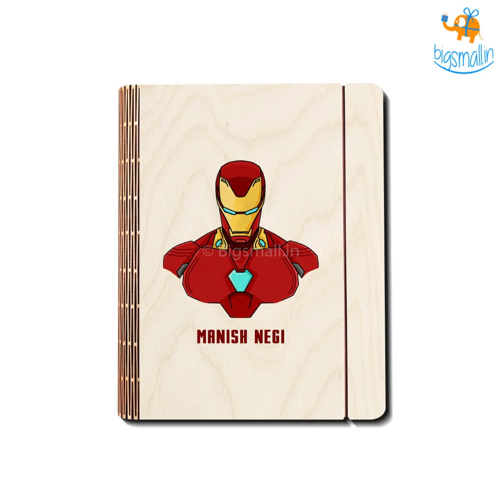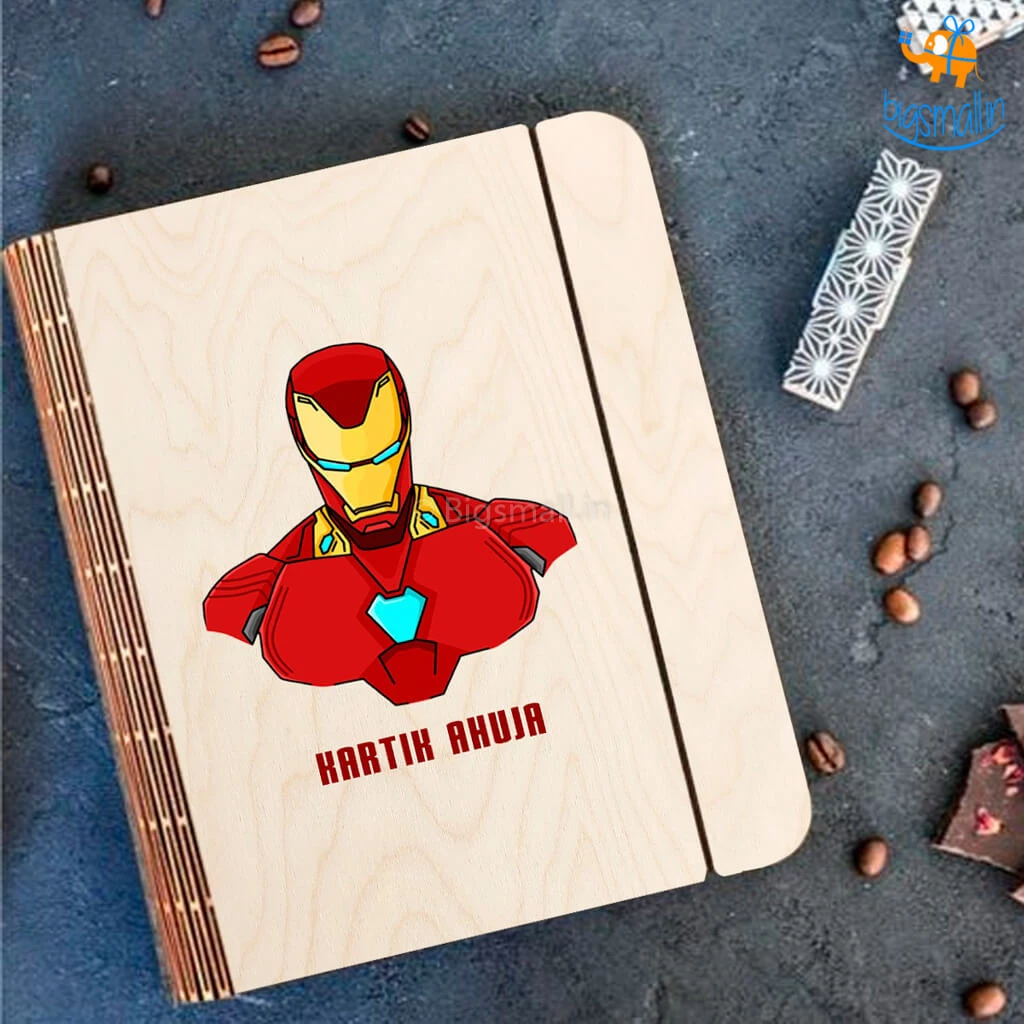 1 x Personalized Iron Man Wooden Binder Diary