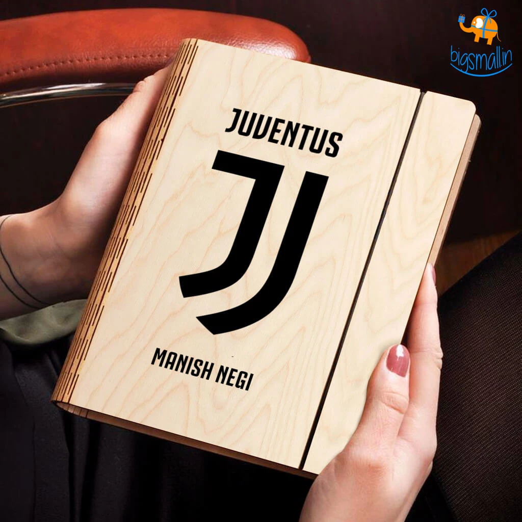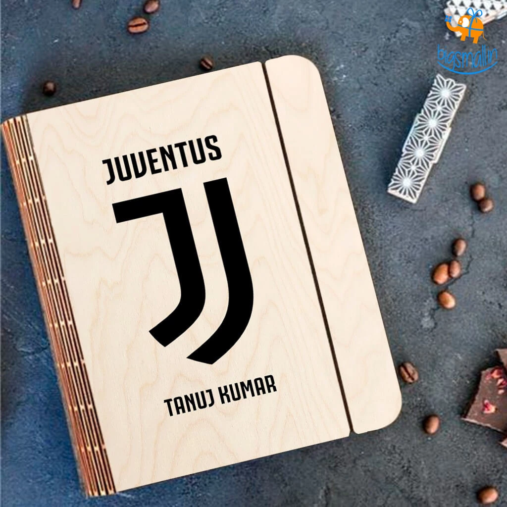 1 x Personalized Juventus Wooden Binder With Elastic Strap