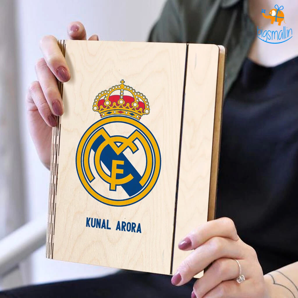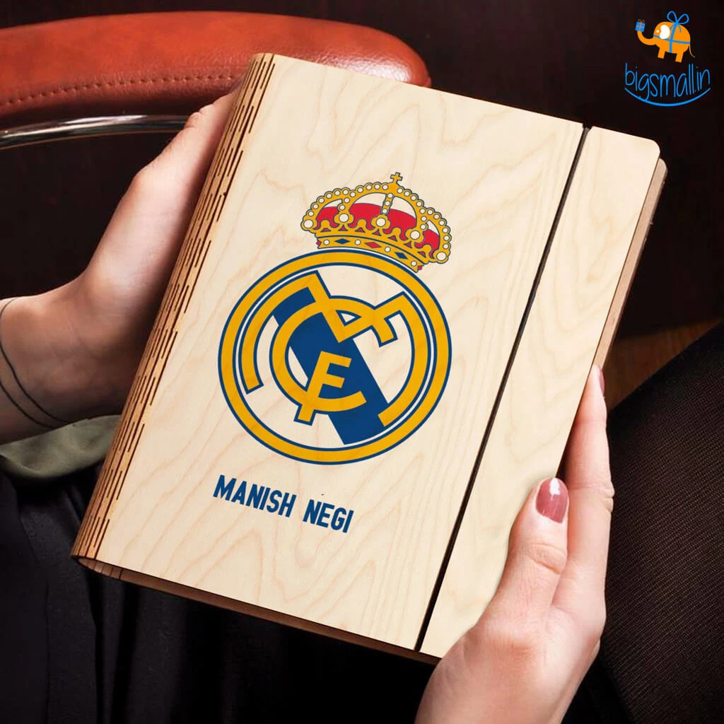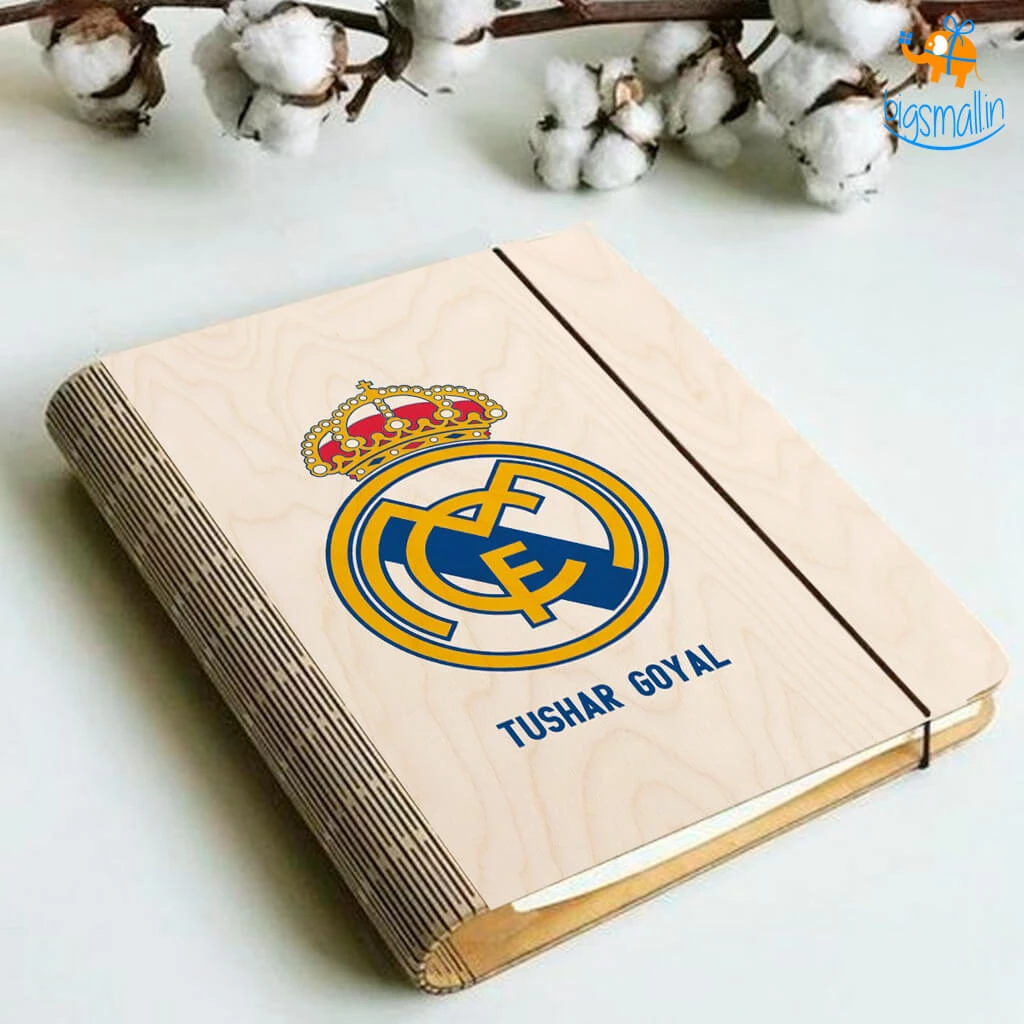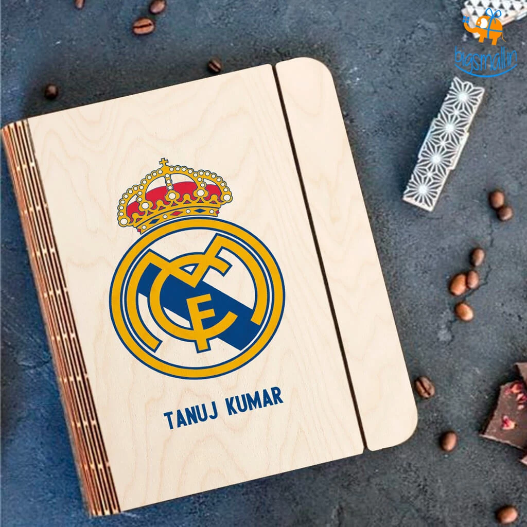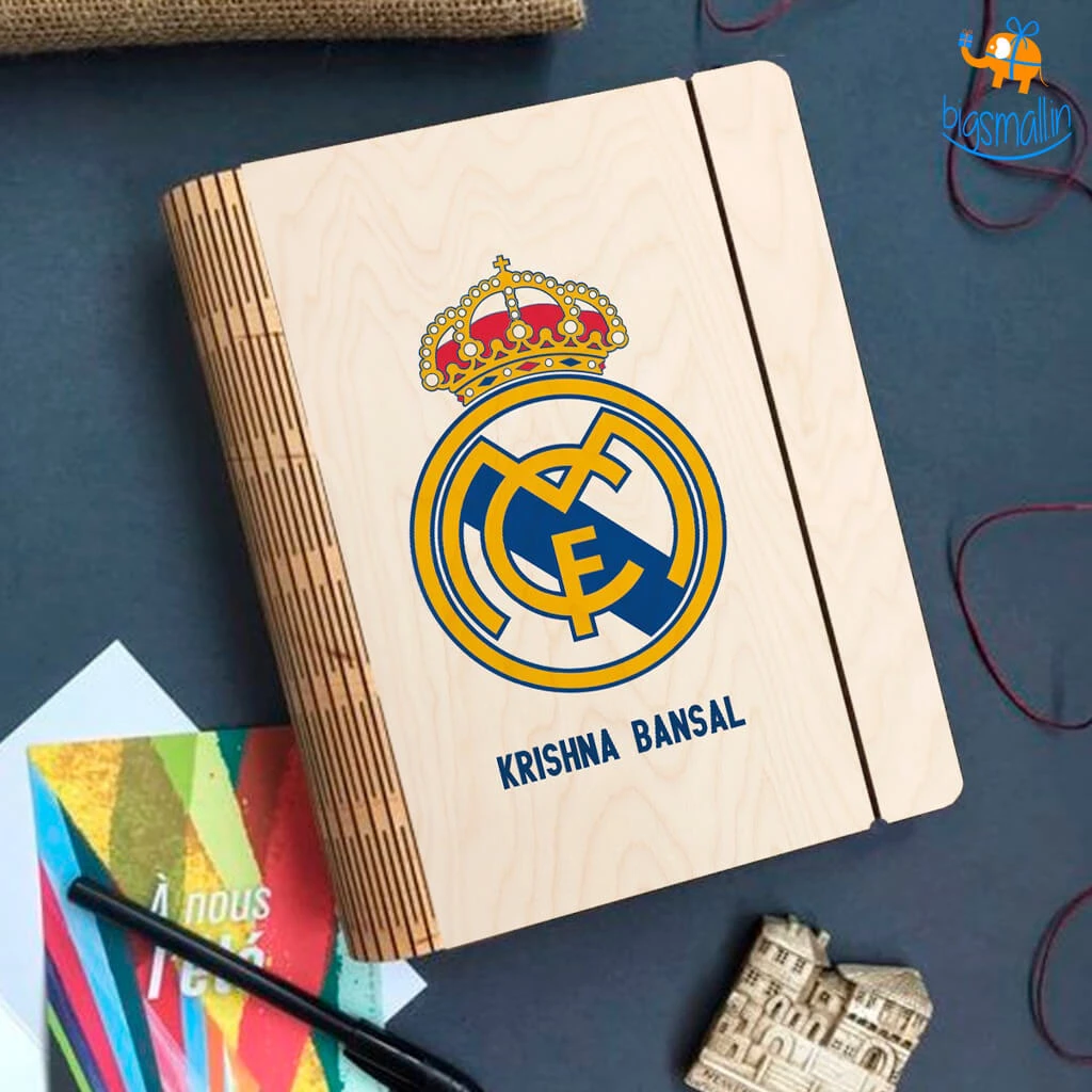 1 x Personalized Real Madrid Wooden Binder With Elastic Strap