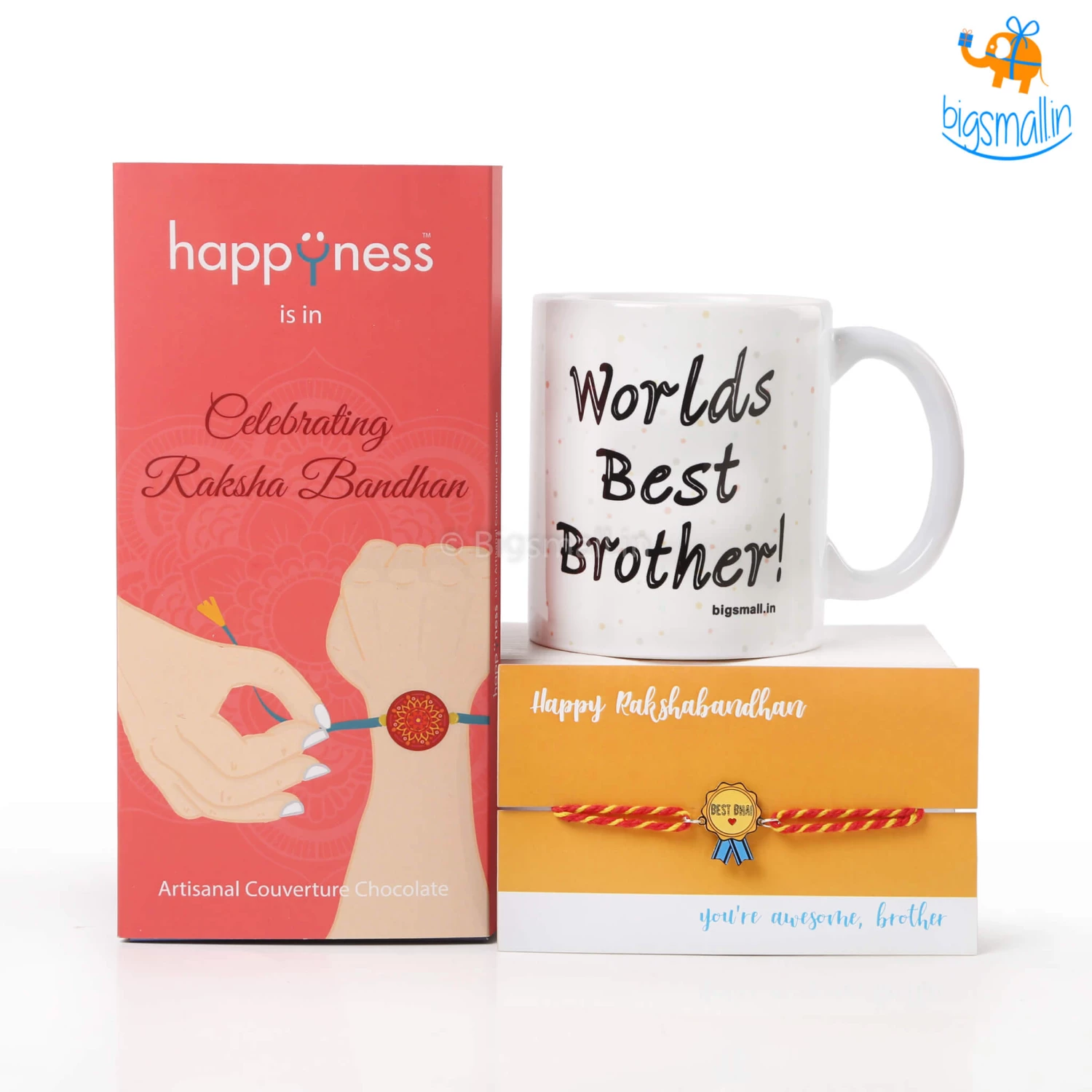 1 x Best Bhai Rakhi, 1 x Happy Rakhi Handmade Chocolate, 1 x World’s Best Brother Mug