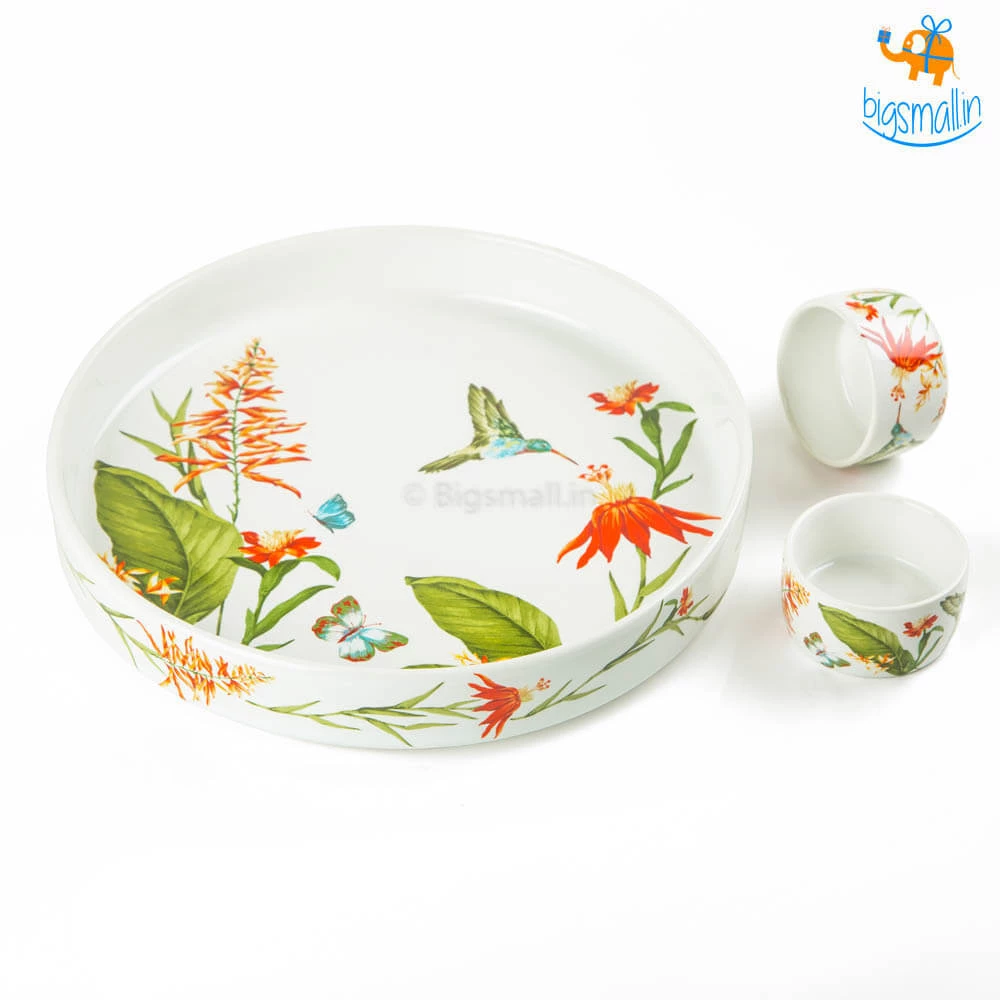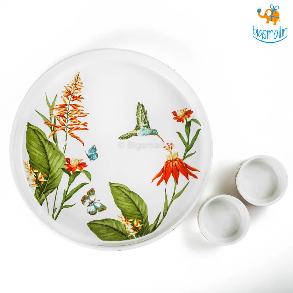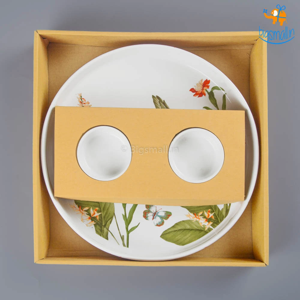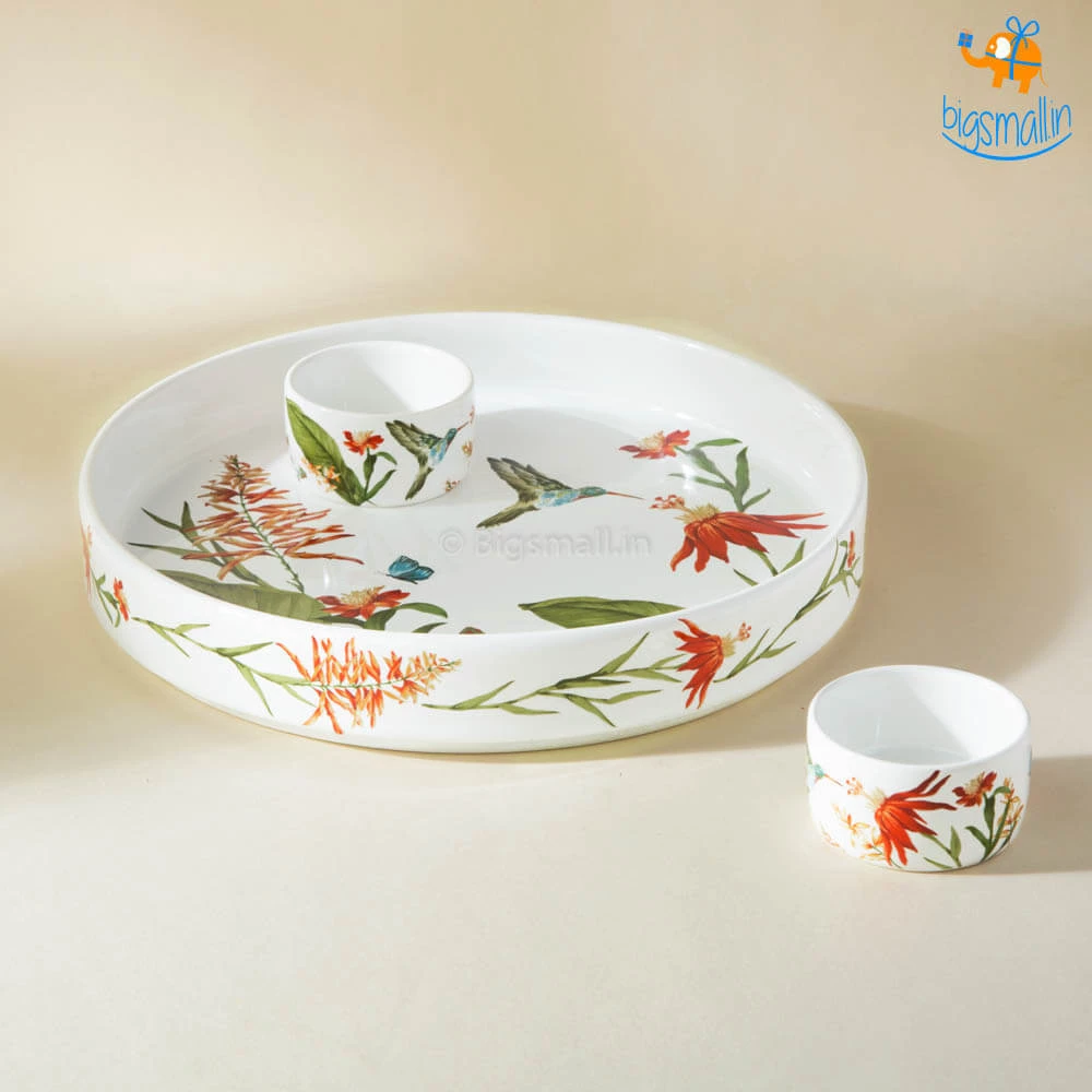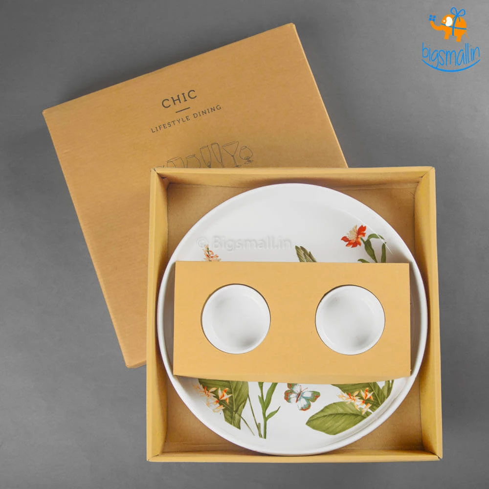 Love chips and dip but want your meal to feel more classy? Or do you just want to serve your dishes in the prettiest set of tableware? Presenting Akemi Printed Plate and Dip Bowls, an aesthetically pleasing and beautifully printed set. They feature a breathtakingly beautiful design with flowers, little birdie and butterflies. They make for a fancy yet minimal present that anyone would love to add to their collection of kitchenware. If you love hosting friends at home, this set will definitely take your party up a notch.