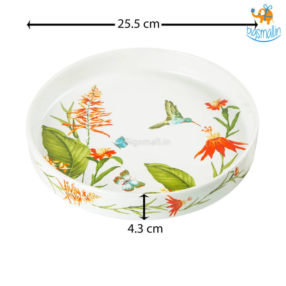 - Dimensions: Plate – 25.5 cm top diameter, Bowl – 6.4 x 3.5 cm