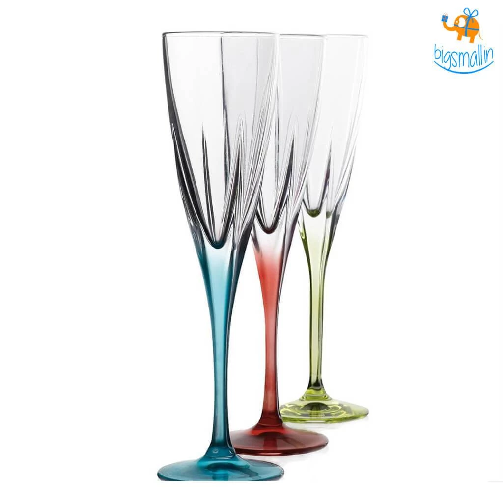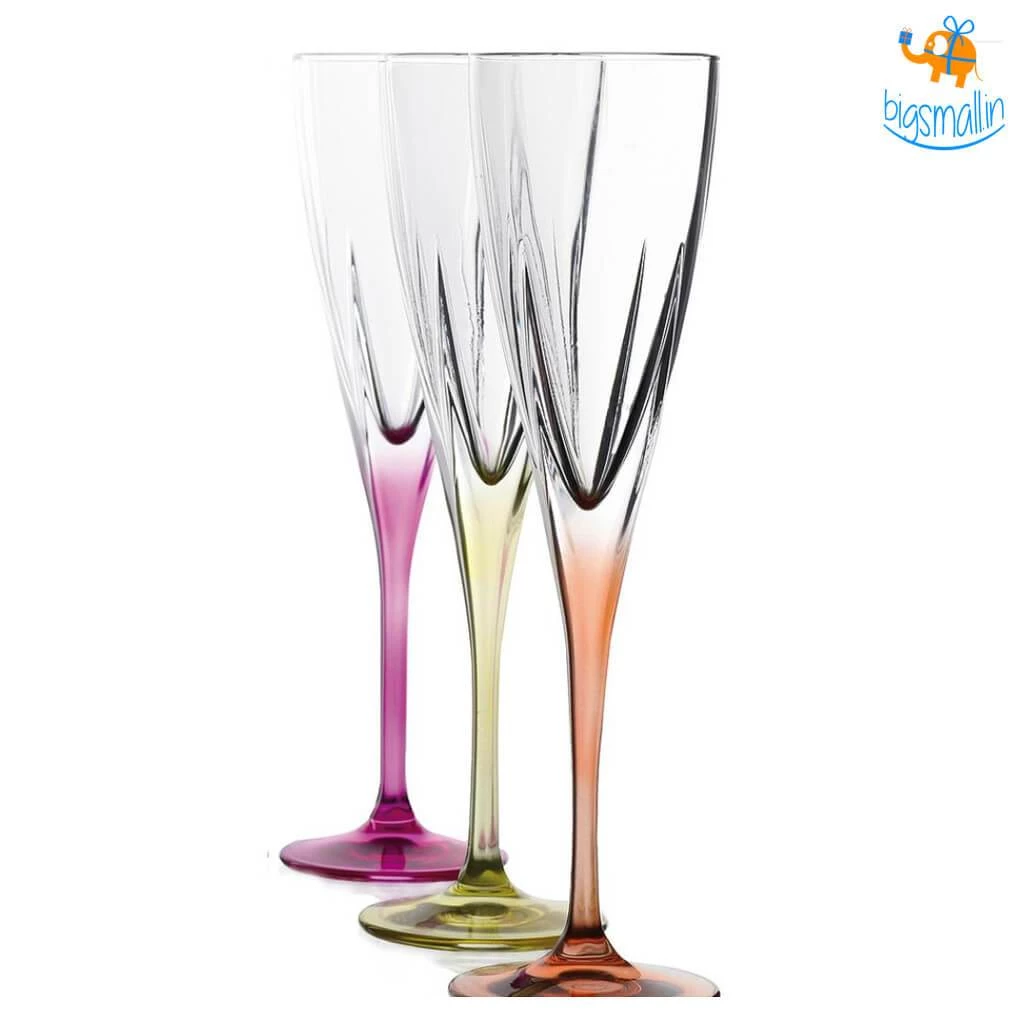 Presenting the perfect accouterment to your Dom Perignon & Veuve Clicquot champagne. When you pop the cork & let the bubbly flow, ensure that you serve the golden drops of heaven in nothing but the best. The premium quality Elegante’ Crystal Tint Champagne Flutes – Set of 6 is designed to do just that. They live up to their name with a distinct air of elegance & are perfect for serving your preferred drink to distinguished guests. Made in the Tuscan region of Italy, each set includes 1 color in each of the following: Blue, Fuschia, Light Green, Orange, Red, and Yellow. The lead-free crystal glass by RCR is eco-friendly & 100% recyclable. Surprise your hosts with this best in class product at the next housewarming party you are invited to!