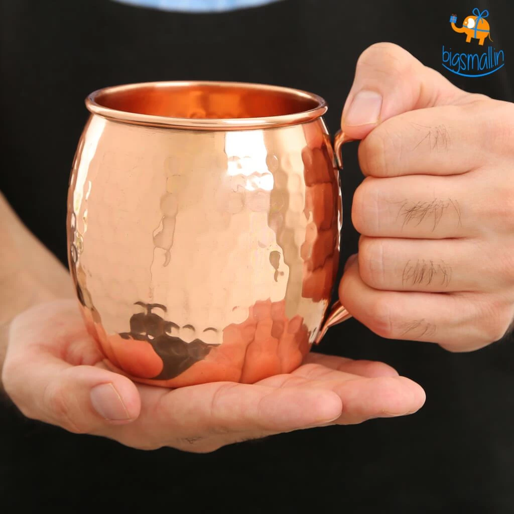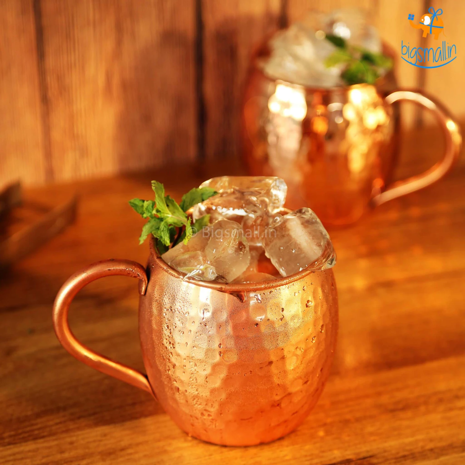 Give a truly vintage feel to your cold beverages – with these classical design Hammered Barrel-Shaped Copper Mugs. Made of 100% pure copper, the vintage design, the copper color and the barrel shape add to its aesthetic beauty. Suitable for all cold beverages, the use of pure copper also has its taste and temperature benefits. Rock your next party with these mugs – available in sets of 2.
