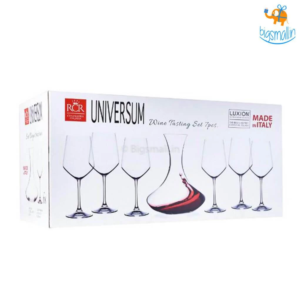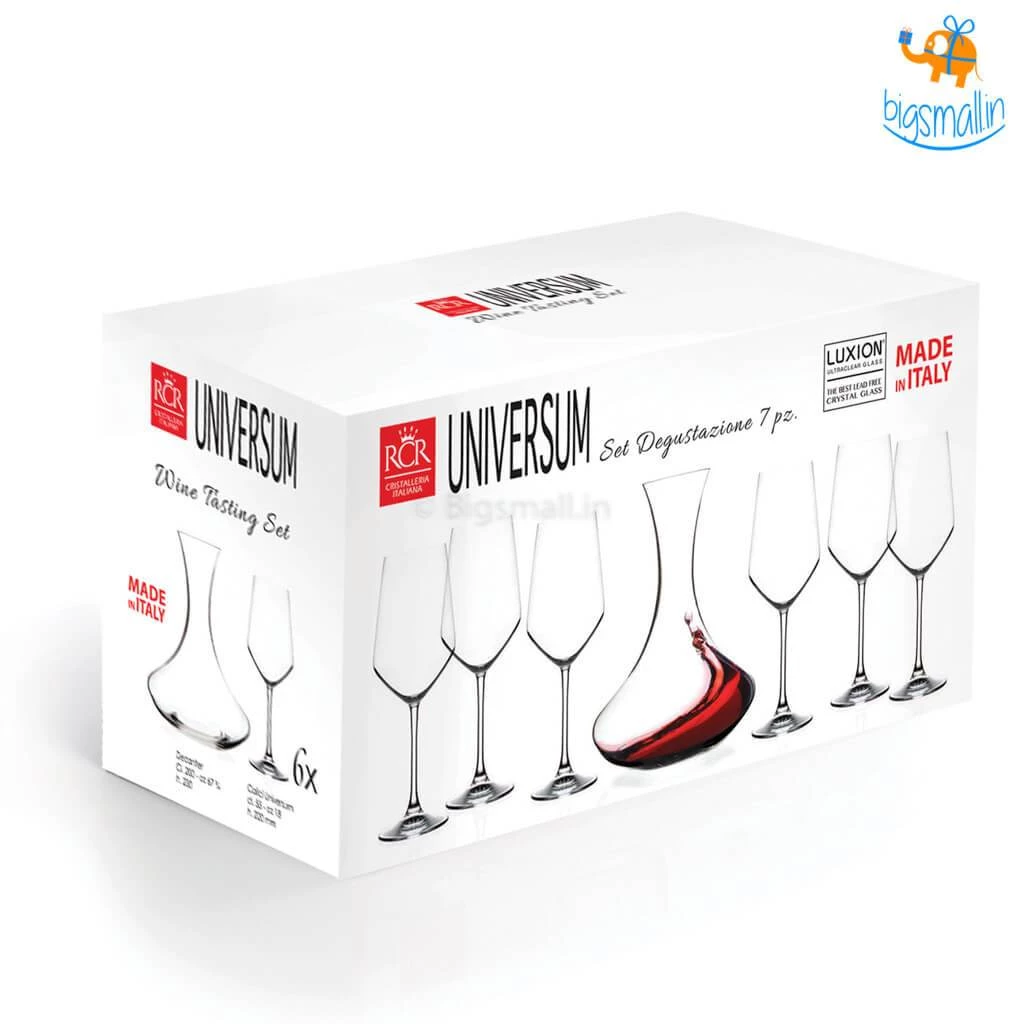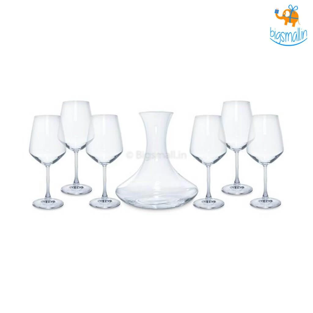 View, swirl, smell, taste and review the wine like a pro with the Sommelier’s Paradise Wine Tasting Set – 7 Pc. Inclusive of a sinuously curved decanter, and 6 long-stemmed wine goblets, it is truly a wine connoisseur’s delight! The epitome of fine Italian craftsmanship, it is made of premium quality luminous Luxion crystal. The lead-free glass ensures the eco-friendliness of the product. Make a classy statement by letting it adorn the shelves of your minibar or gift it to the hosts at a housewarming party.