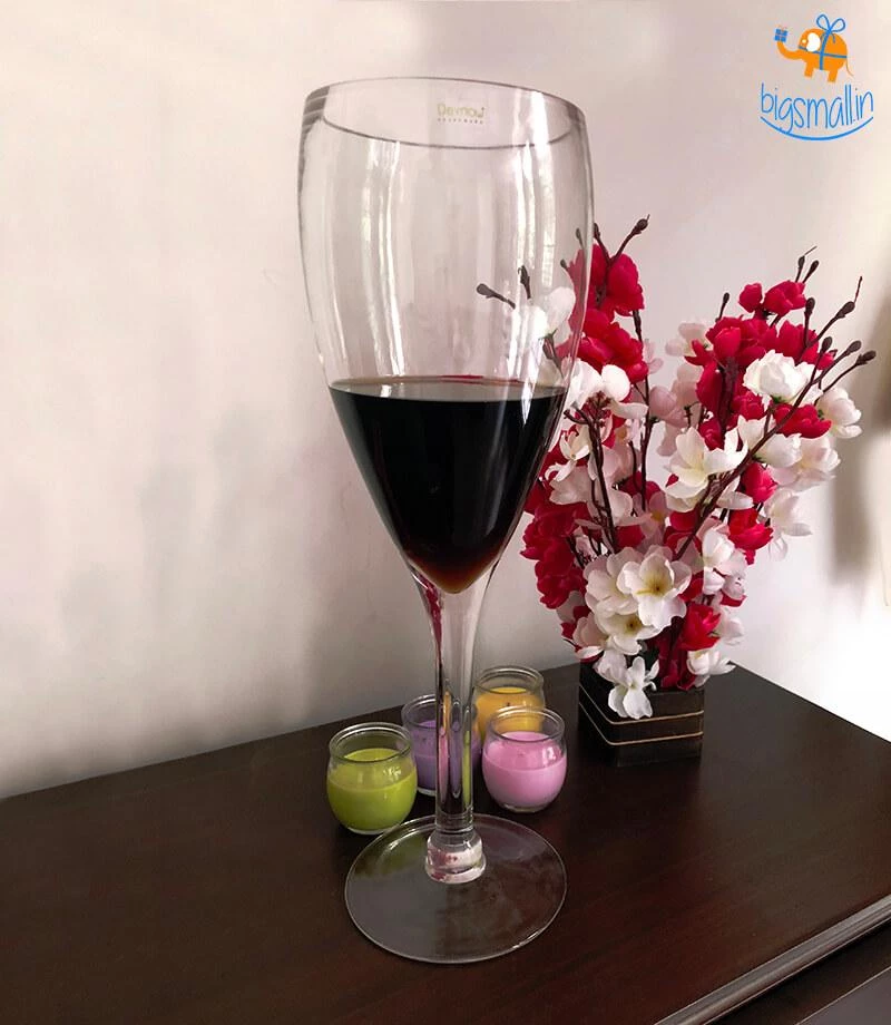 The jumbo wine glass is for those who love to live their life king size. A novel decoration, it can be used to hold flowers, wine bottles surrounded by ice, or simply ice for your party. A creative way to decorate your table or shelf, it is made of glass with approximate dimensions of 15 x 5 x 5 inches. A microfibre cloth is assisted with this glass, which helps to clean the glass to perfection. It is a perfect gift for a wine lover or a housewarming gift to a party maniac