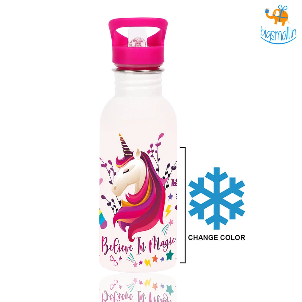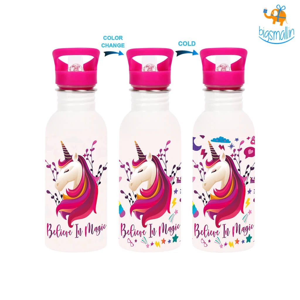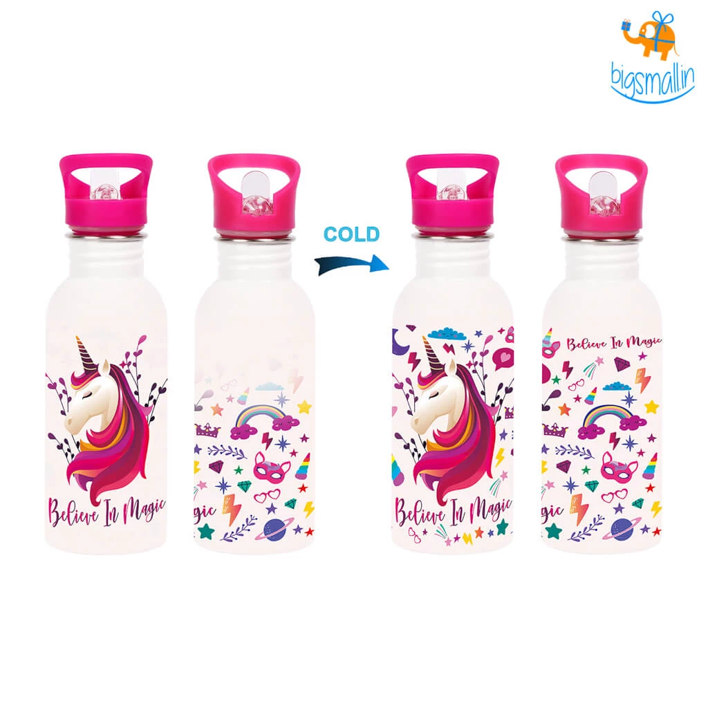 Any unicorn seems incomplete without its surroundings filled with bright colours. The simple colours turn into more vibrant ones in this Unicorn Colour Changing Magic Bottle as soon as you pour in cold water into this stainless steel bottle. With the properties of thermometric, this change in colour is possible due to the change in temperature. Keep yourself and your child fascinated. The perfect gift for kids or best gifts for girls available online.