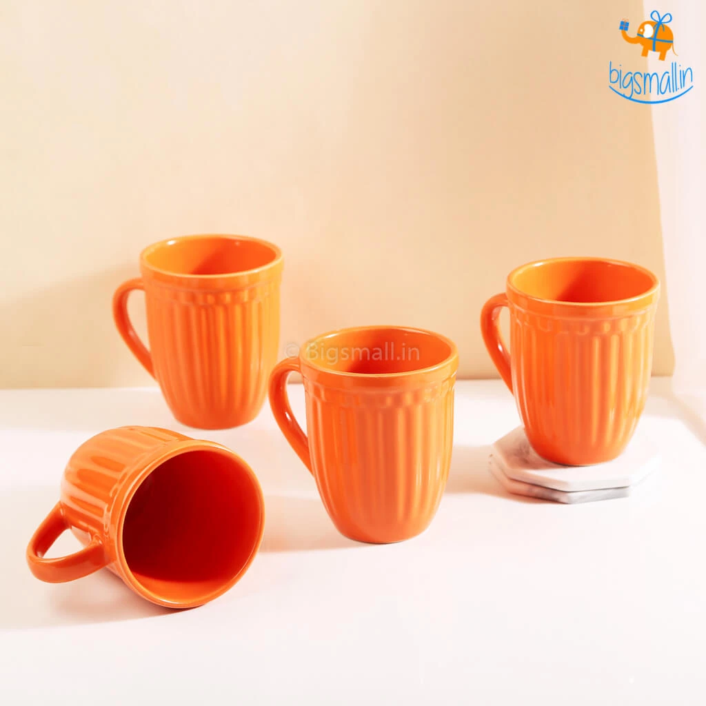 Are you intrigued by sunrises? Or are you a sunset person? With the color palatte of the sunset, webring to you the Orange Ceramic Mug. Plain smooth surfaces aren’t always exciting and we know that! That’s why here we have an Orange Ceramic Mug for you to smoothly run your fingers down the patterns or making a lame tune with your nails while you sip your hot or cold beverage in your mug. Available as a single mug, set of 2, or set of 4, this ceramic mug is high-quality and rigid which will last a good time! Perfect gift for the tea or coffee lovers always looking for new additions to their mug collections.