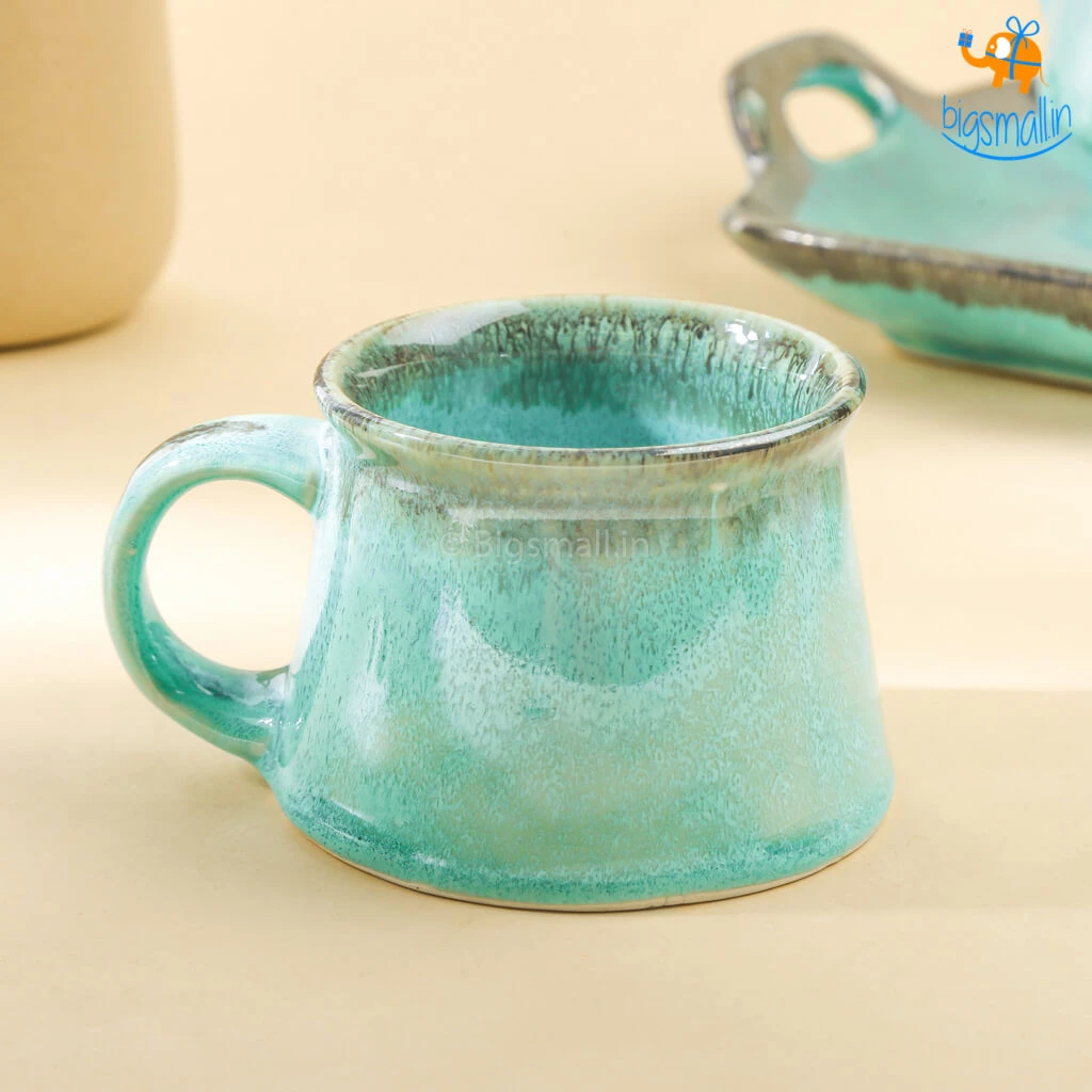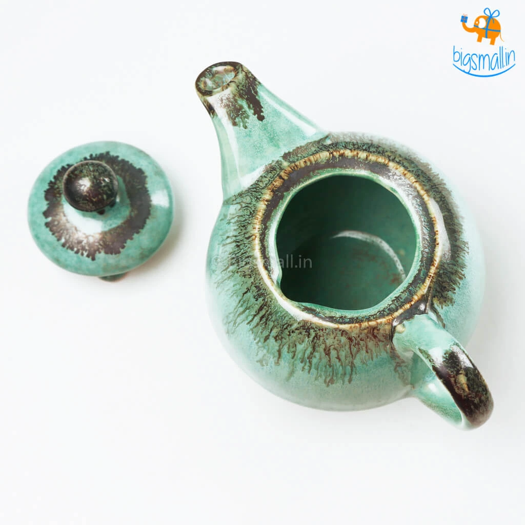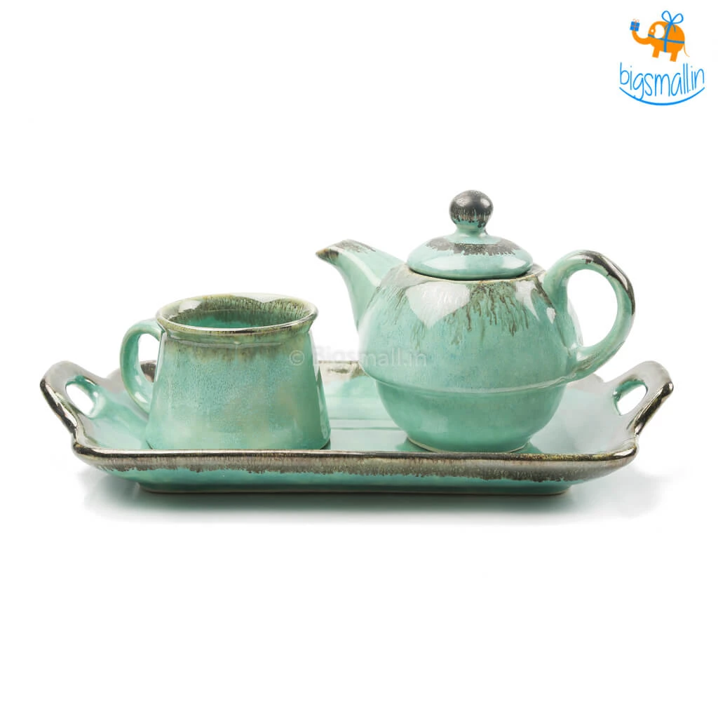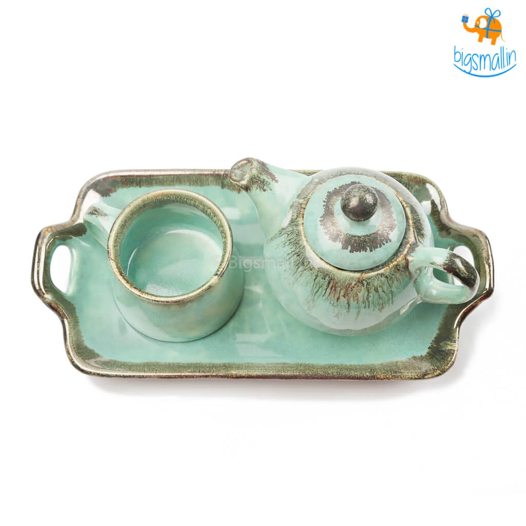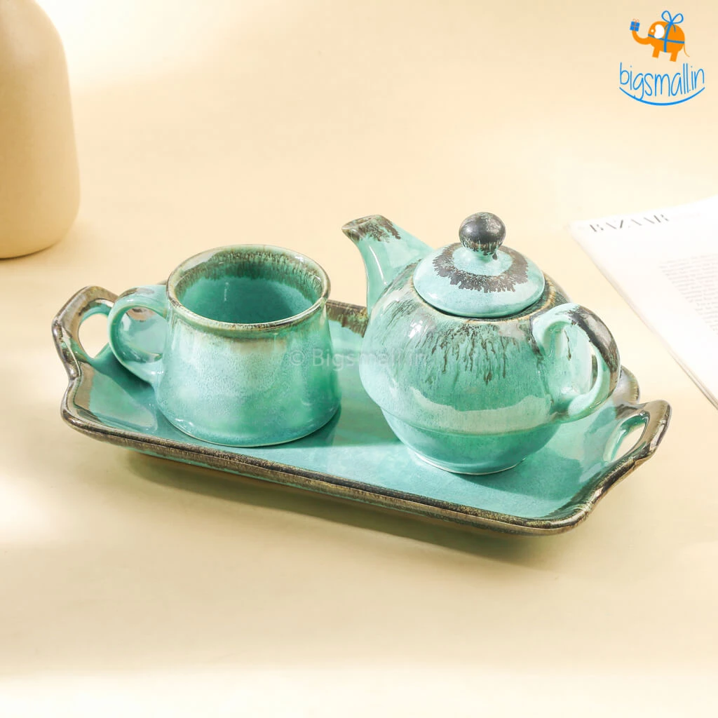 The Rusty Turquoise Teapot and Cup, is the most aesthetically pleasing delight you could possibly find. Handmade with the magic of the shade that is the sea, it is a masterpiece. A breathtakingly beautiful design, it is printed in greenish-blue wash with an elegant finish. The set includes a teapot, a tea cup and a tray. They make for a fancy yet minimal present that anyone would love to add to their collection of kitchenware. If you love having varied crockery at home, this set will definitely take your mood, and your tea party up a notch.