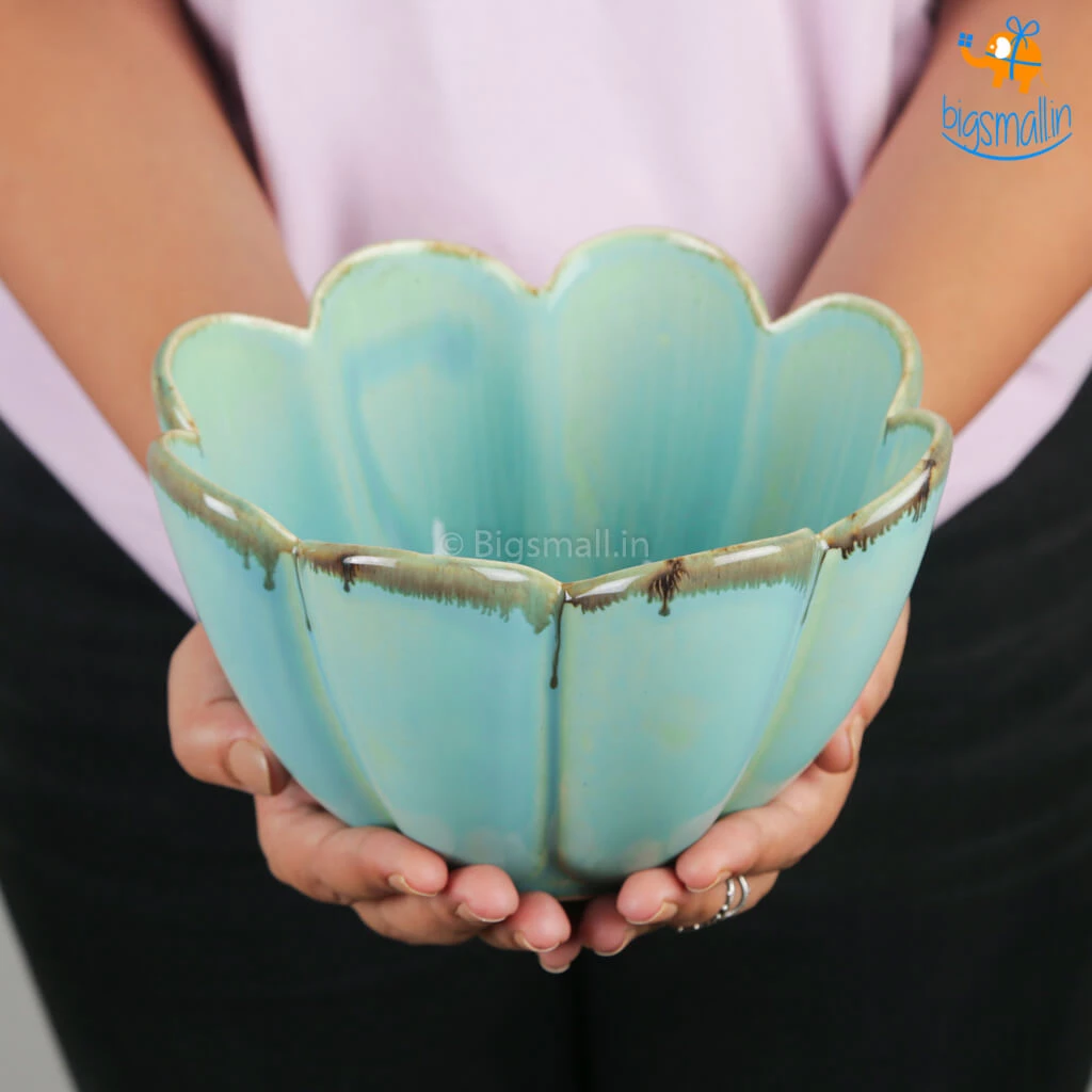 Want to spice up your mornings? Begin with tweaking your breakfast ritual by dunking your cold milk and preferred cereal in this Turquoise Glazed Snack Bowl. This beautiful snack/cereal bowl comes in a unique shape with blue glaze. Use it to keep folded paper chits in your next game of Pick-a-chit or maybe stock it up with your favourite snacks and keep it by the bedside to satiate those midnight cravings. A great housewarming gift for a friend who prides over their bowl collection.