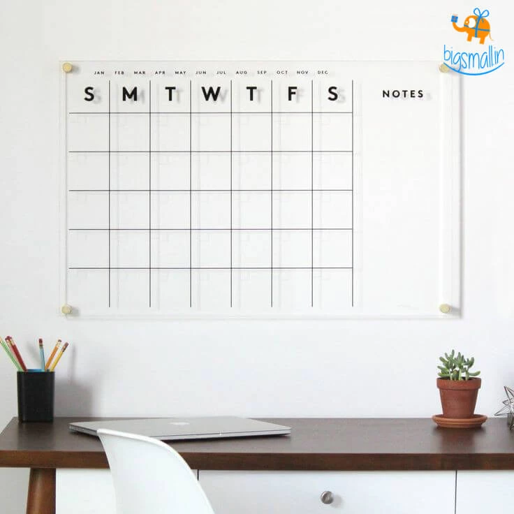 Introducing a sleek and stylish, Monthly Clear Acrylic Calendar. Both aesthetic and functional this calendar will make your monthly plans clearer by keeping track of events, birthdays, future-to-dos and more. It will organize your days & serve as a great décor item in your workspace. The organizer makes for a great gift to a loved one who loves planning their days ahead and keep track of events and meetings.