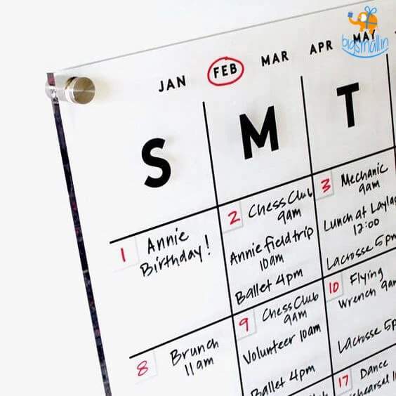 1 x Monthly Clear Acrylic Calendar