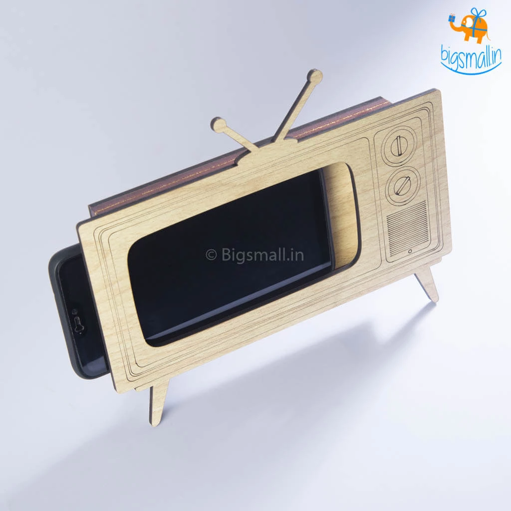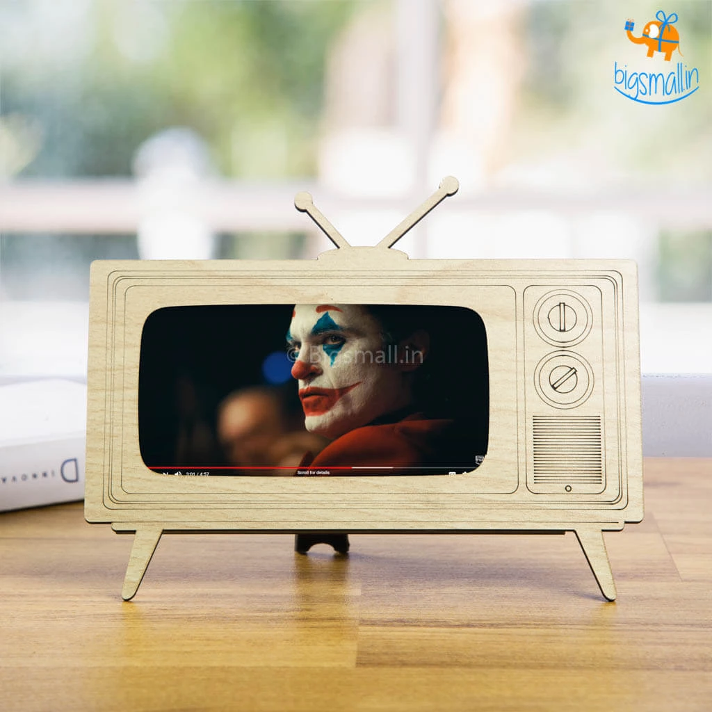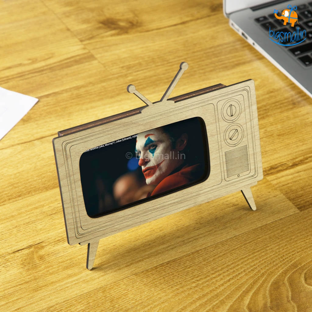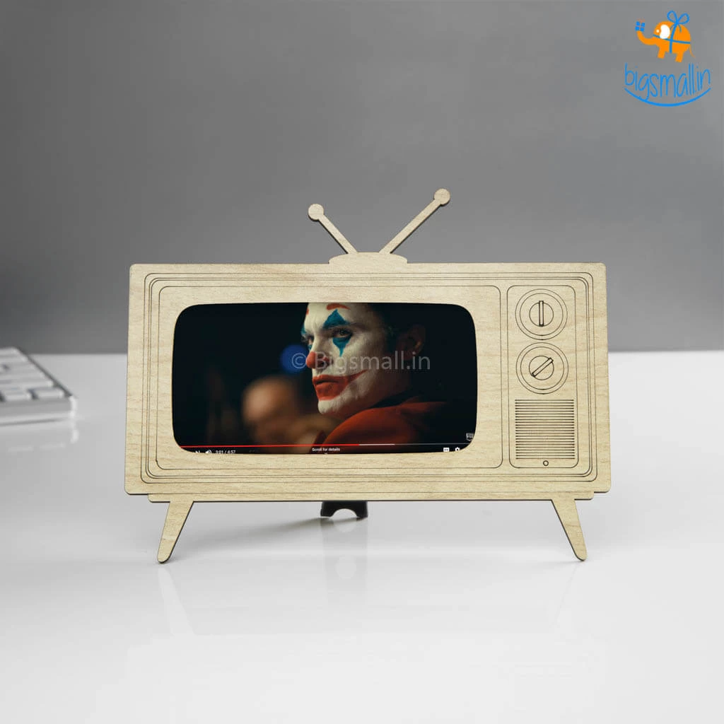Presenting a stylish and quirky mobile stand that is made out of wood. This phone holder is designed like television and it will look amazing on the office desk or work table. This wooden stand holds the mobile phone horizontally and it can be placed on any flat surface. A unique gift for a student who makes notes while watching lectures on their phone or a couch potato friend who loves binge-watching YouTube videos.