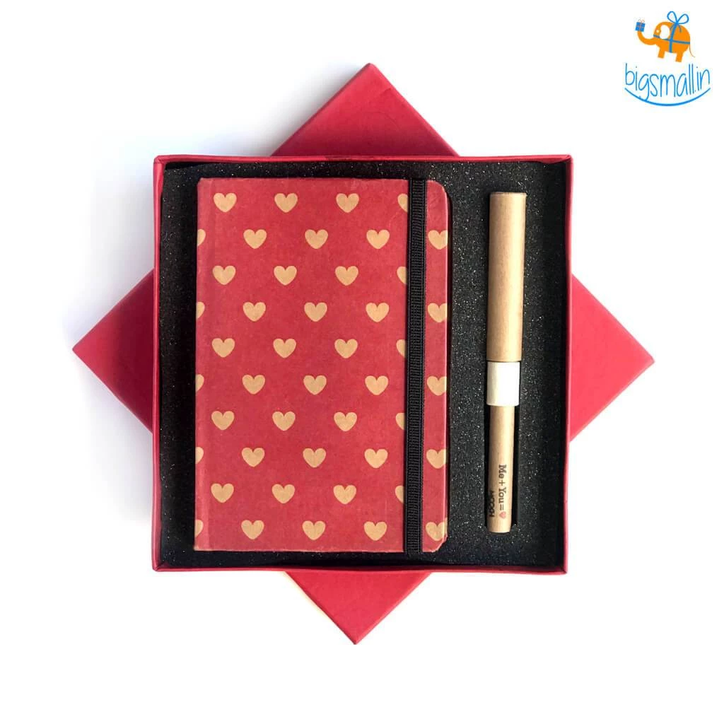- Inclusive of a heart print A6 notebook with elastic, and a black gel pen